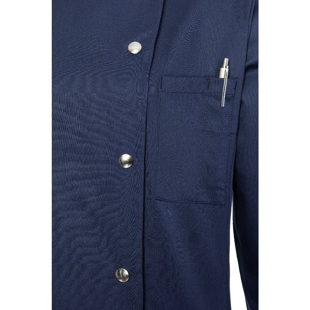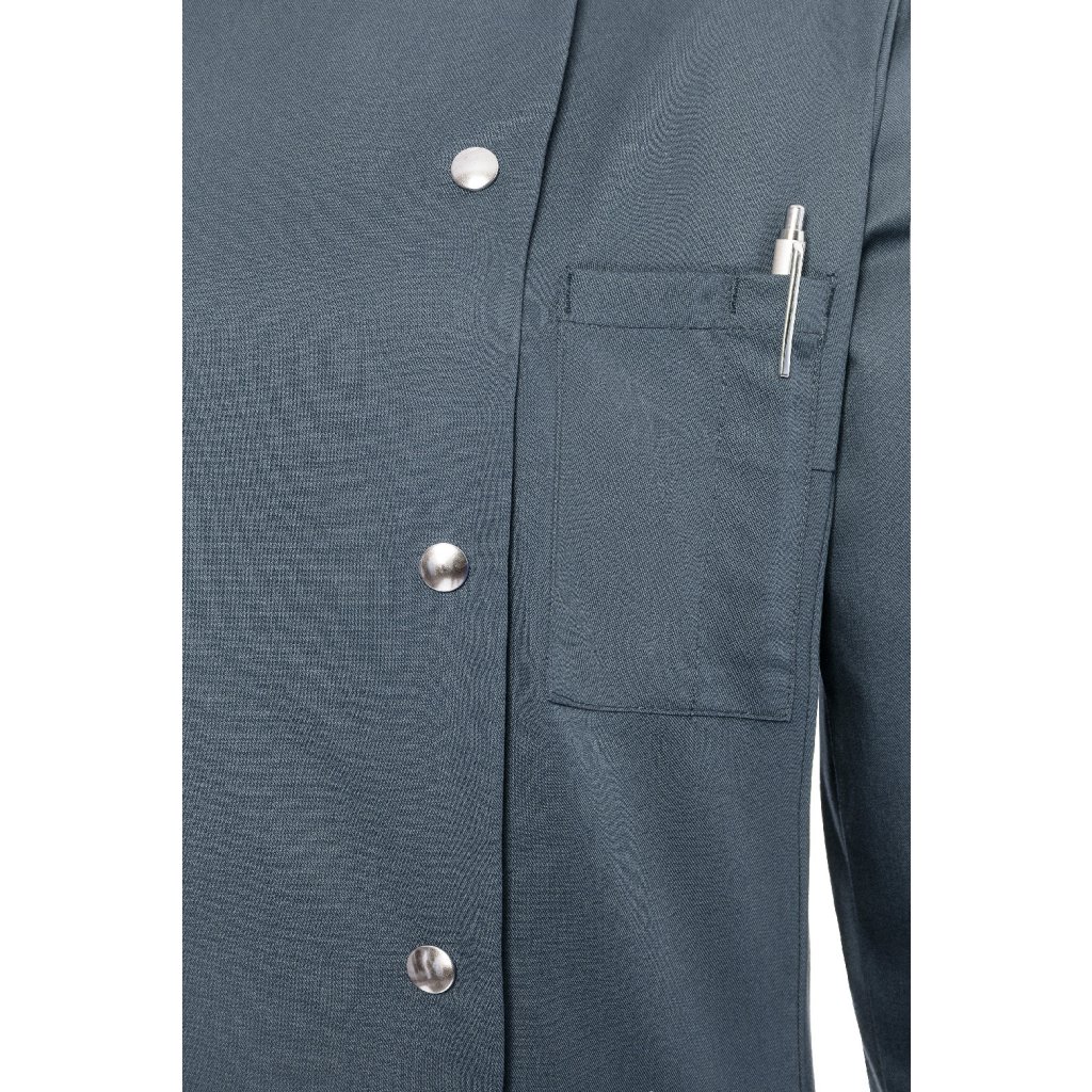 | keprová vazba, 65 % polyester / 35 % bavlna, 215 g/m² | vysoce kvalitní, předsrážená, stálobarevná, snadno se udržuje | | kuchařská bunda pro dámy v přiléhavém střihu | vypasování v pase, boční švy vpředu a vzadu | manžety rukávů se štěrbinou | našitá šikmá náprsní kapsa vlevo (min. 7 x 13 cm) s kapsičkou na pero (2 x 13 cm) | sako s 5 knoflíky a druky | vhodná pro průmyslové praní | odpovídající výrobek: kuchařská bunda Lars - JM 14 (číslo výrobku výrobce)Doplňkové parametry