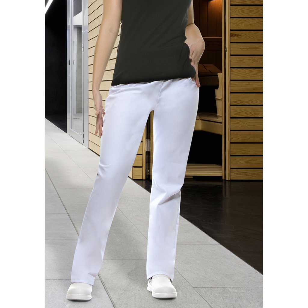 | keprová vazba, 215 g/m² | vysoce rafinované, předsrážené, stálobarevné, snadno udržovatelné | pohodlné kalhoty pro dámy s elastickým pasem | pohodlné kalhoty pro dámy s elastickým pasem | standardní výška pasu | rozšířené nohavice | odpovídající výrobek: Kalhoty na přetažení Carlo - HM 1 (číslo výrobku výrobce)Doplňkové parametry