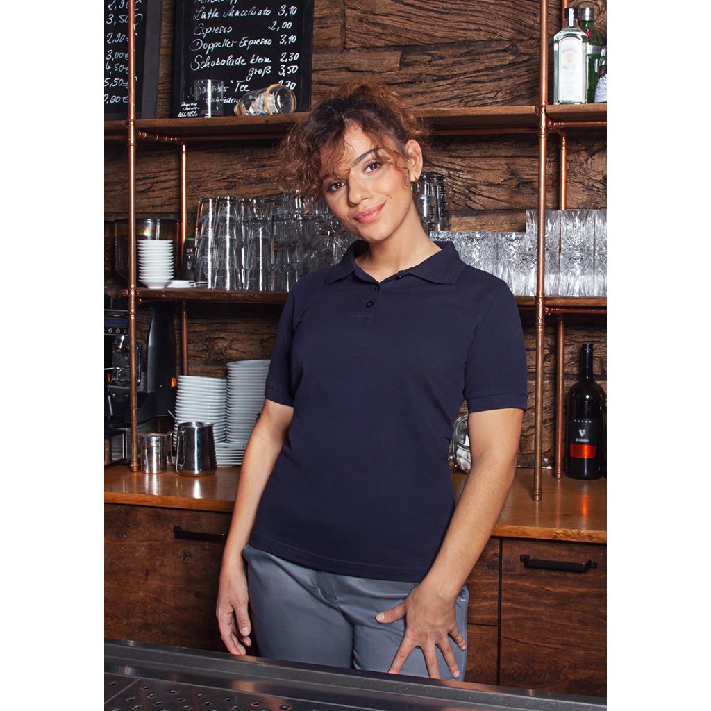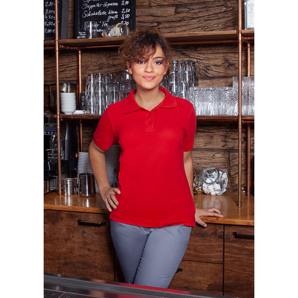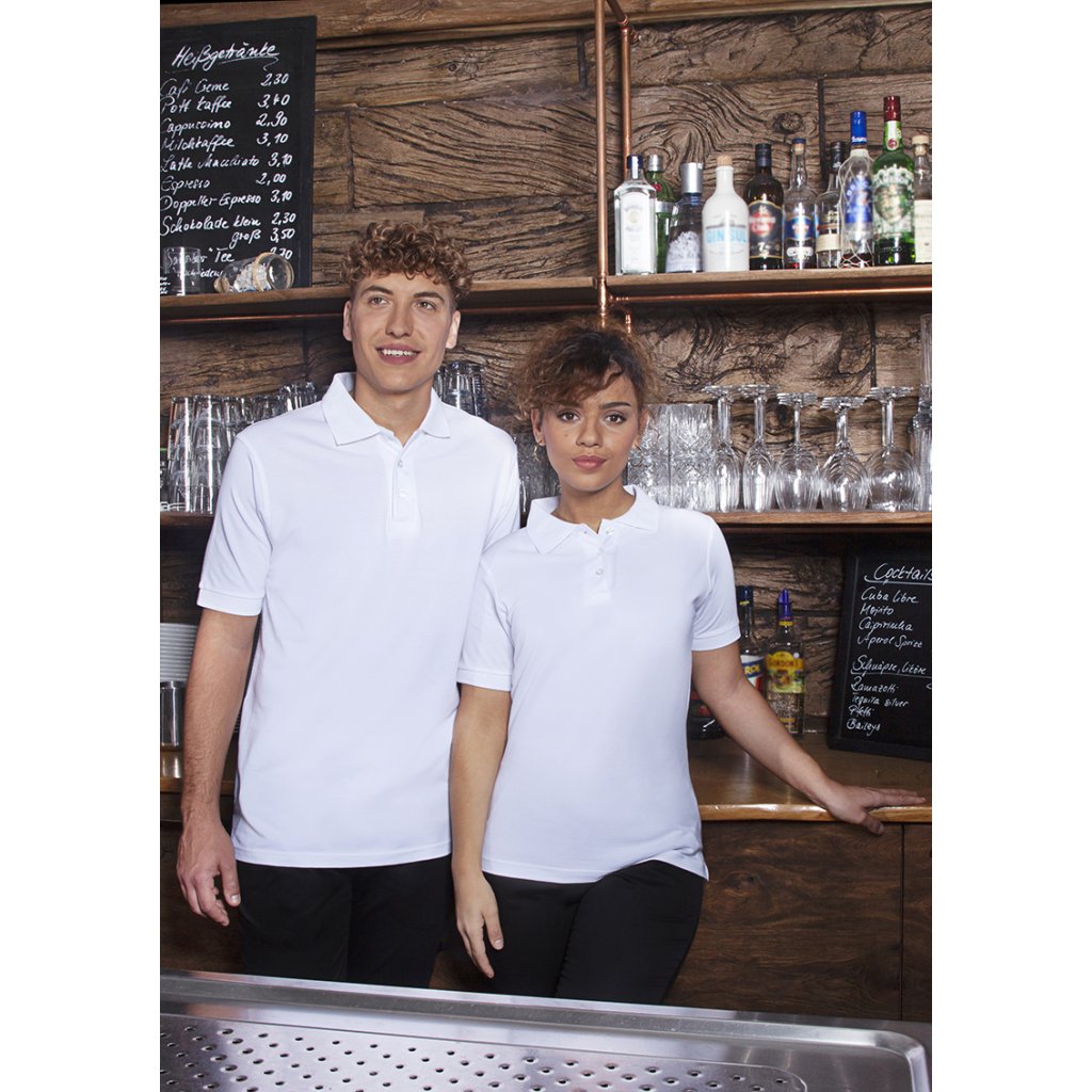 | jersey-piqué, 100 % bavlna (česaná, prstencově spředená), 220 g/m² | snadná údržba, nesráží se, tvarově stálý | odolné, klasické polo tričko pro ženy | odolné, klasické polo tričko pro ženy | univerzální použití v kuchyni, při obsluze, úklidu, péči, wellness a mnoha dalších oblastech | cool základní kousek, který je ideálním společníkem nejen do práce, ale i pro volný čas | vyvinuto pro vysoké nároky na péči (bílé: lze prát na 95 °C, vhodné do sušičky / barevné: lze prát na 60 °C, vhodné do sušičky) | rovný střih s mírně zúženým pasem zaručuje optimální volnost pohybu | pletený polo límec s páskou na krku | pletené manžety rukávů | dvojité švy | 3 tón v tónu knoflíky | boční rozparky na spodním lemu | odpovídající výrobek: Pánské pracovní polo tričko - BPM 4 (číslo výrobku výrobce)Doplňkové parametry