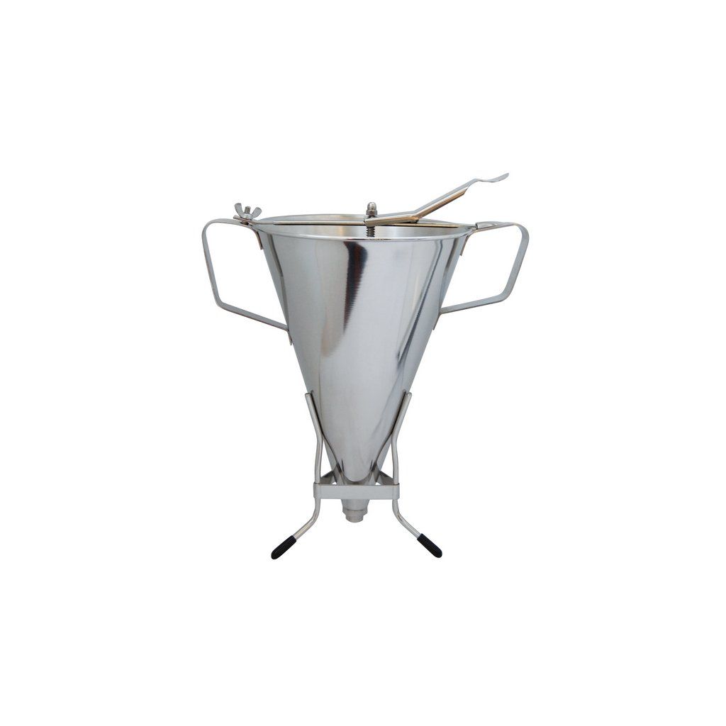 Dávkovač z nerezové oceli je ideální na pěny, tekuté přísady, jako jsou omáčky, karamel, želé, těsto na sušenky nebo cokoliv jiného. Má 2 odnímatelné trysky z nerezové oceli, 3 výstupní velikosti Ø 5, 10 a 15 mm. Obě nepoužité trysky se při skladování vejdou pod rukojeť. Integrovaná široká tryska (Ø 15 mm) umožňuje nerozbít molekuly vzduchu přítomné ve směsi a je dostatečně velká pro nalévání omáček s malými kousky. 2 madla pro bezpečnou a snadnou manipulaci. Hluboká kónická nálevka o objemu 3,3 l zajišťuje, že přípravek přirozeně klouže tryskou, přičemž si zachovává texturu pěny.Snadné použití: Nalijte stisknutím páčky palcem.Páčka: Design navržený pro ergonomickou polohu palce.Dávkovač 3,3 l