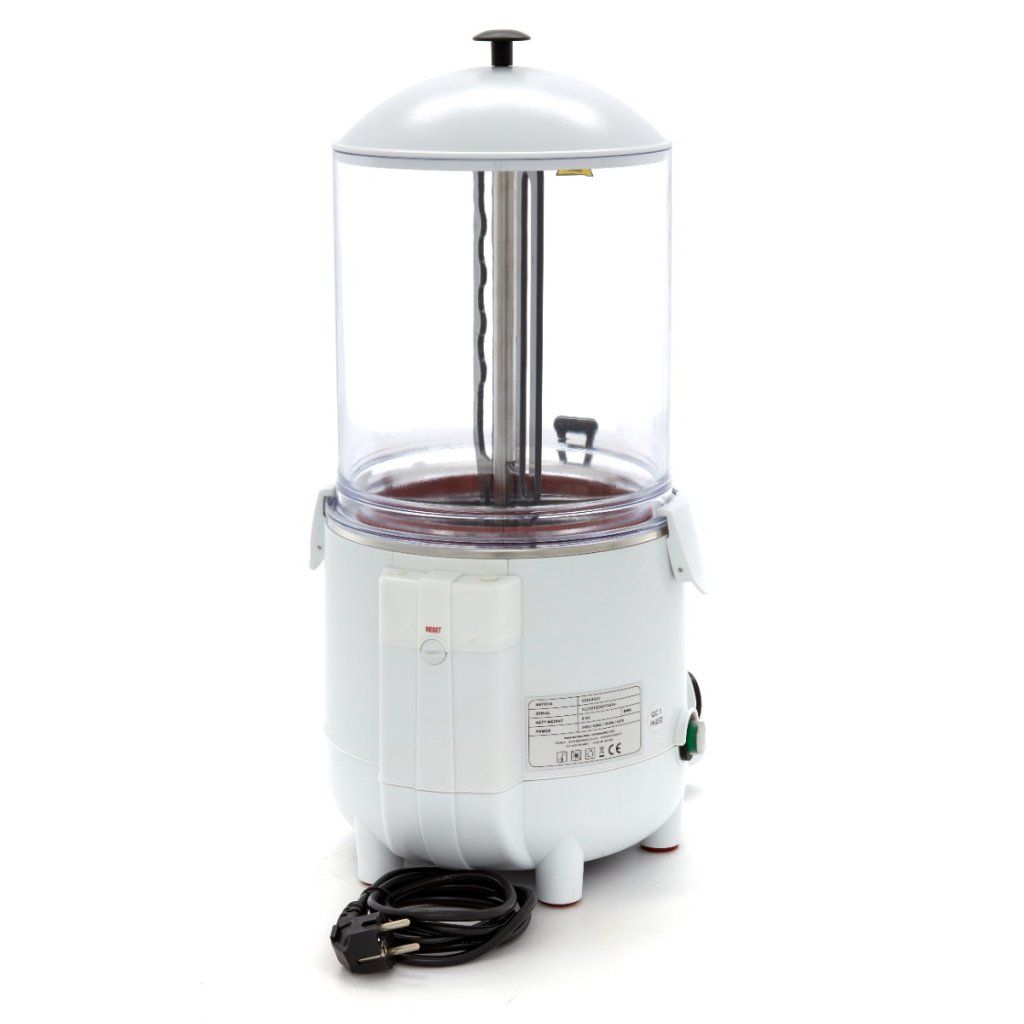 + Nápoje mají konstantní teplotu + Míchací mechanismus zabraňuje tvorbě hrudek v nápojích + Dodává se s držákem na trubky pro důkladné čištění + Vhodné i pro jiné ohřívané nápoje - Dlouhá doba ohřevu výrobku - Je nutné důkladné čištěníS tímto dávkovačem na bílou čokoládu můžete snadno vydat 10 litrů horké čokolády. Je také vybaven systémem ohřevu bain marie, který zajišťuje, že se čokoládové mléko ohřívá postupně a nepřipaluje se. Díky kontinuálnímu rotačnímu míchacímu mechanismu je zabráněno tvorbě sraženin a ucpávání výpustného kohoutku.