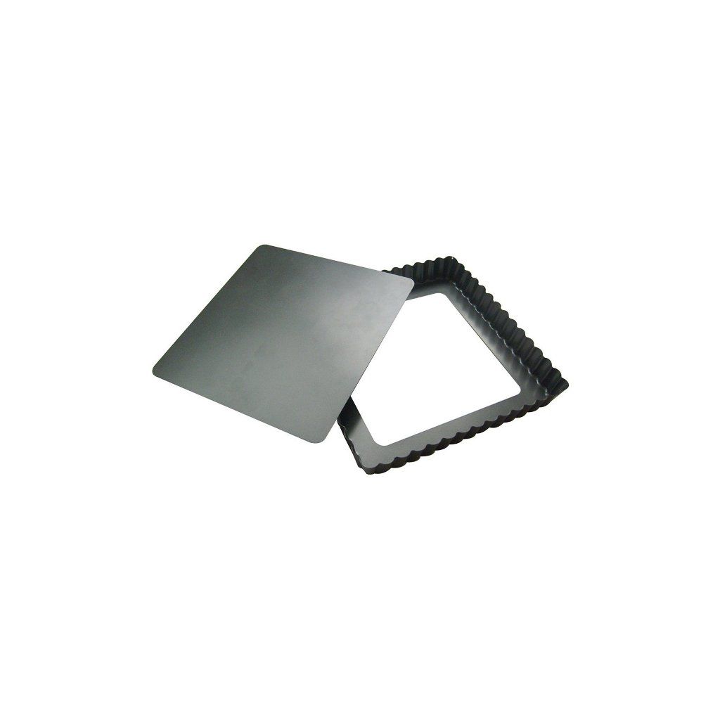Čtvercová forma ideální pro pečení tradičních koláčů a buchet. Díky odnímatelnému dnu zjednodušuje manipulaci se zákuskem. Po upečení se dezert snadněji vytahuje a servíruje. Vyrábí se z kvalitní oceli s nepřilnavým povrchem. Jednoduchý vroubkovaný design v černém provedení se hodí do každého druhu interiéru. Při pečení je vhodné použít pečící papír nebo vymazat formu tukem a forma není určená na mytí v myčce na nádobí.Forma s odnímatelným dnem 23 × 23 x 2,7 cm