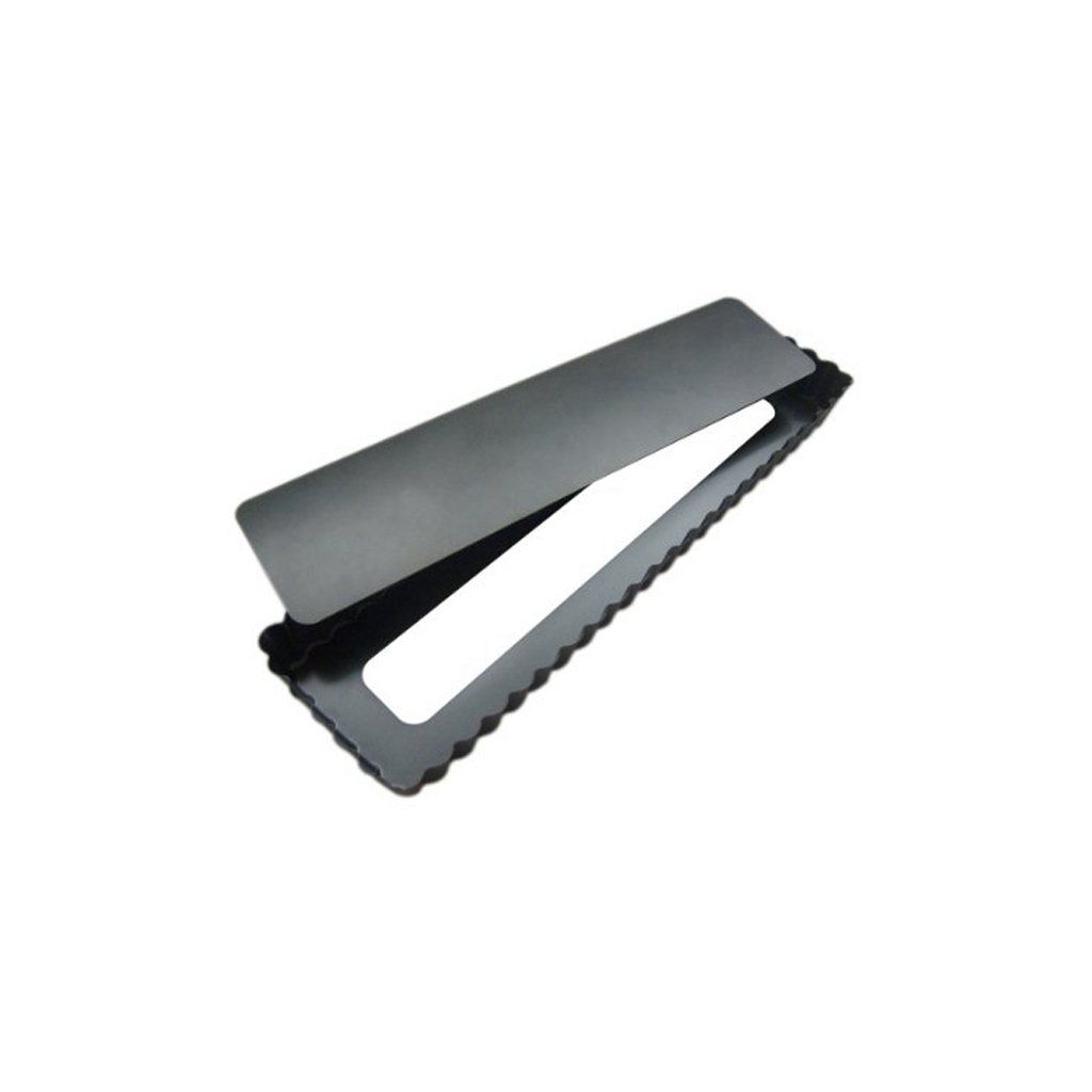 Obdélníková forma je ideální pro pečení tradičních koláčů a buchet. Díky odnímatelnému dnu zjednodušuje manipulaci se zákuskem. Po upečení se dezert snadněji vytahuje a servíruje. Vyrábí se z kvalitní oceli s nepřilnavým povrchem. Jednoduchý vroubkovaný design v černém provedení se hodí do každého druhu interiéru. Při pečení je vhodné použít pečící papír nebo vymazat formu tukem a forma není určená na mytí v myčce na nádobí.Forma s odnímatelným dnem36,6 × 10,2 × 2,7 cm