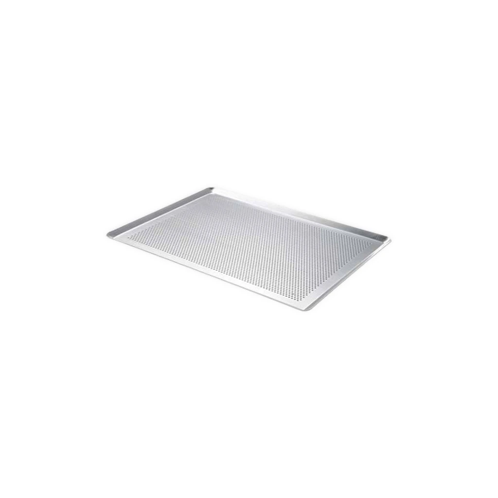 Plech od značky de Buyer se vyrábí ze špičkového materiálu a je ideální volbou na pečení pečiva nebo delikates jako dortíky, sušenky nebo koláč kyš. Perforace plechu perfektně cirkuluje vzduch tak, aby se připravovaná lahůdka pořádně propekla. Můžete ho použít v konvektomatu i v myčce.Plech na pečení Al non-stick 600 × 400 mm
