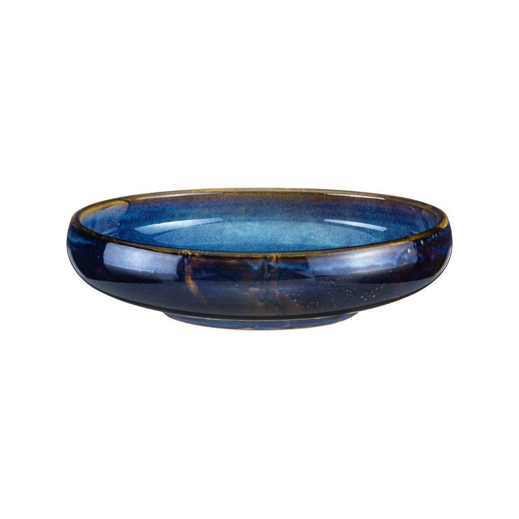 Ultramarínová modř zakončená měděným okrajem ze sebe vyzařuje krásu hlubinného oceánu, kterou spolu s vašimi kulinářskými kousky servíruje přímo na jídelní stoly. 100% porcelán pokrytý glazurou dodává jedinečný vzor získaný během procesu vypalování při 1 380 °C. To také zaručuje velmi vysokou odolnost proti odštípnutí. Zkuste smíchat tuto kolekci s kousky Fire a uvidíte, že vaše nádobí bude vypadat parádně. Měděný okraj dokonale ladí s barvou kolekce Fire. Nebojte se také míchání s řadou Wikle, neboť kobaltově modrá barva s chladnou a něžnou šedou perfektně doplní jakýkoliv dekor. Duo těchto barevných provedení je zárukou originálního uspořádání stolu. A v kombinaci s příbory SU Antic navíc zdůrazní inovativní způsob prezentace nádobí.Mísa nízká 1,6 l