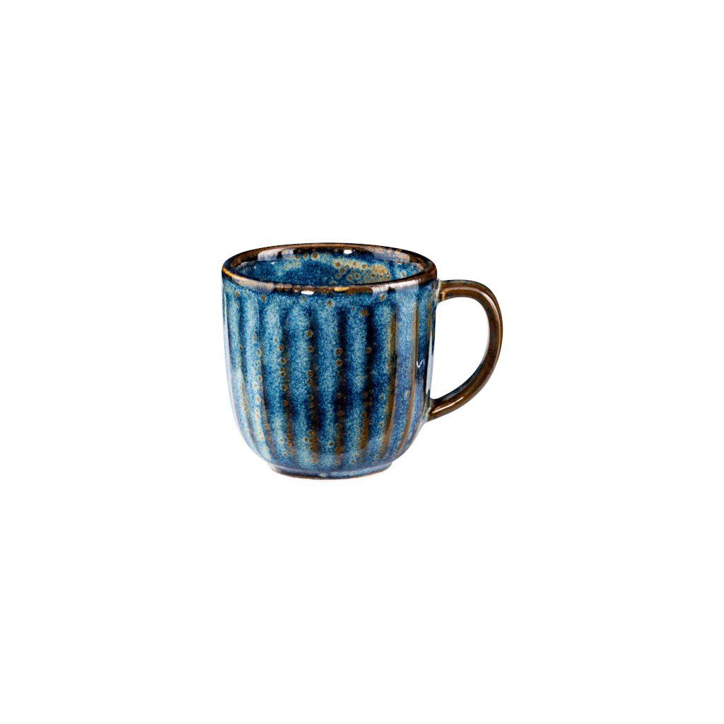 Ultramarínová modř zakončená měděným okrajem ze sebe vyzařuje krásu hlubinného oceánu, kterou spolu s vašimi kulinářskými kousky servíruje přímo na jídelní stoly. 100% porcelán pokrytý glazurou dodává jedinečný vzor získaný během procesu vypalování při 1 380 °C. To také zaručuje velmi vysokou odolnost proti odštípnutí. Zkuste smíchat tuto kolekci s kousky Fire a uvidíte, že vaše nádobí bude vypadat parádně. Měděný okraj dokonale ladí s barvou kolekce Fire. Nebojte se také míchání s řadou Wikle, neboť kobaltově modrá barva s chladnou a něžnou šedou perfektně doplní jakýkoliv dekor. Duo těchto barevných provedení je zárukou originálního uspořádání stolu. A v kombinaci s příbory SU Antic navíc zdůrazní inovativní způsob prezentace nádobí.Šálek na espresso 90 ml