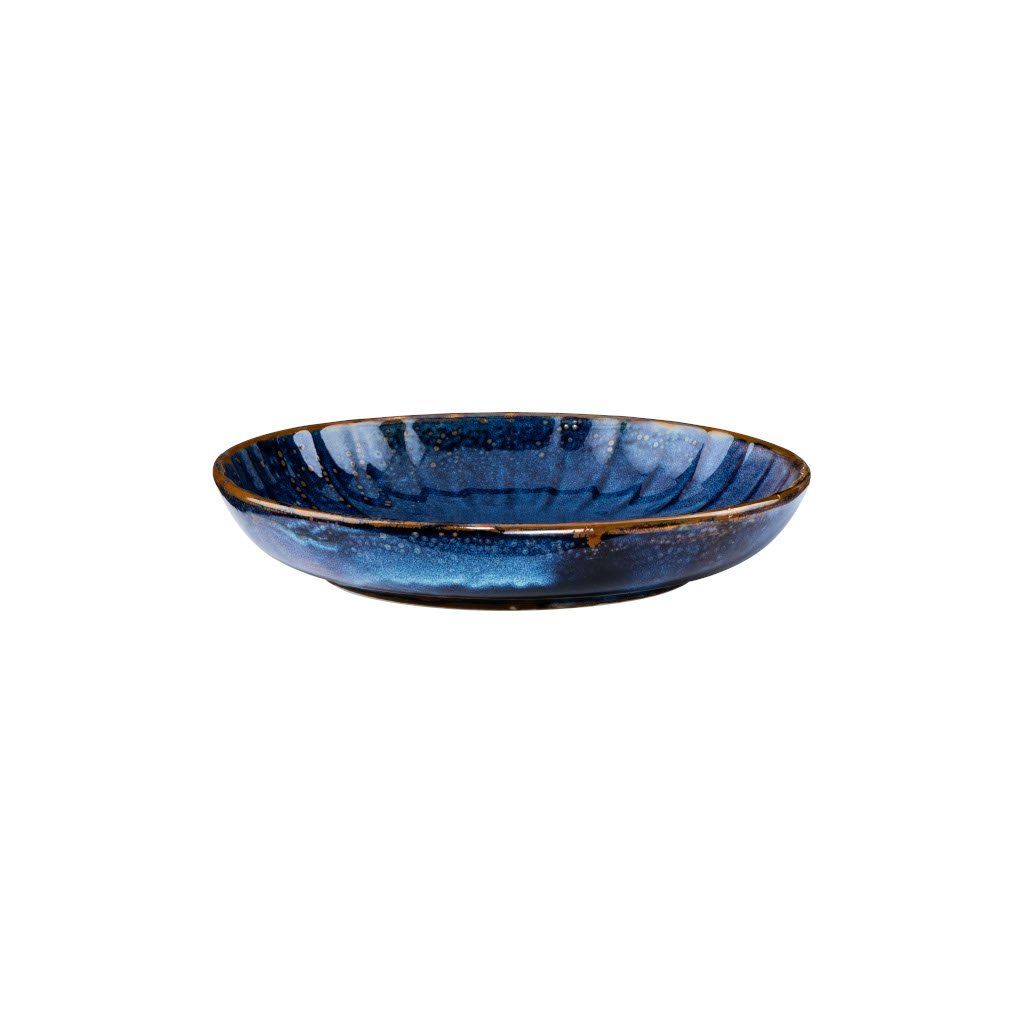Ultramarínová modř zakončená měděným okrajem ze sebe vyzařuje krásu hlubinného oceánu, kterou spolu s vašimi kulinářskými kousky servíruje přímo na jídelní stoly. 100% porcelán pokrytý glazurou dodává jedinečný vzor získaný během procesu vypalování při 1 380 °C. To také zaručuje velmi vysokou odolnost proti odštípnutí. Zkuste smíchat tuto kolekci s kousky Fire a uvidíte, že vaše nádobí bude vypadat parádně. Měděný okraj dokonale ladí s barvou kolekce Fire. Nebojte se také míchání s řadou Wikle, neboť kobaltově modrá barva s chladnou a něžnou šedou perfektně doplní jakýkoliv dekor. Duo těchto barevných provedení je zárukou originálního uspořádání stolu. A v kombinaci s příbory SU Antic navíc zdůrazní inovativní způsob prezentace nádobí.Talíř hluboký pr. 26 cm