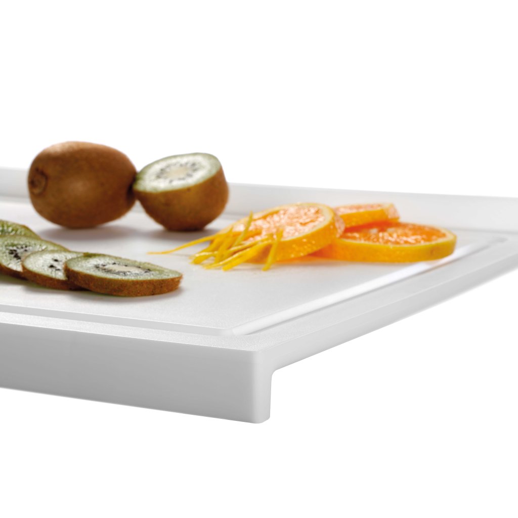 Krájecí deska má dva speciálně tvarované okraje, které na jedné straně pevně drží desku na pracovní ploše a na druhé straně zabraňují sklouznutí potravin.Doplňkové parametry