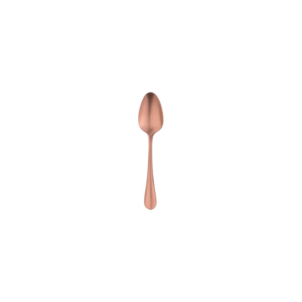 Tato čajová lžička zaujme svým měděným odstínem a celý stůl tak rozzáří půvabnou jemností a honosným stylem. Je dokonale vyvážená, takže se perfektně drží v ruce. Na její výrobu se používá nerezová ocel 18/10, která garantuje vysokou odolnost proti korozi a dlouhou životnost i při každodenním používání. Grafit, zlato nebo měď jsou v současnosti nejmódnější barvy pro zařizování bytů a restaurací. Skvěle se mísí s monochromatickým aranžmá a dodávají mu jedinečný, módní styl. PVD představuje technologii pro barvení ocelových povrchů. Jedná se o moderní metodu, díky které lze z oceli vyrobit nejen stříbro. Barevný efekt se získává ve speciálních podmínkách pomocí moderních technologií a fyzikálních jevů. Ocel s PVD povlakem je extrémně odolná, neopotřebovává se, nebarví, je rozložena tence a dokonale po celé ploše příboru. Díky tomu vypadají příbory velmi přirozeně a efektně. Na povrchu nezůstávají žádné otisky prstů. Taková ocel také není náchylná ke korozi. Tento povlak je zdravotně nezávadný – vyznačuje se antibakteriálními a antialergickými vlastnostmi.Lžička čajová 14,5 cm