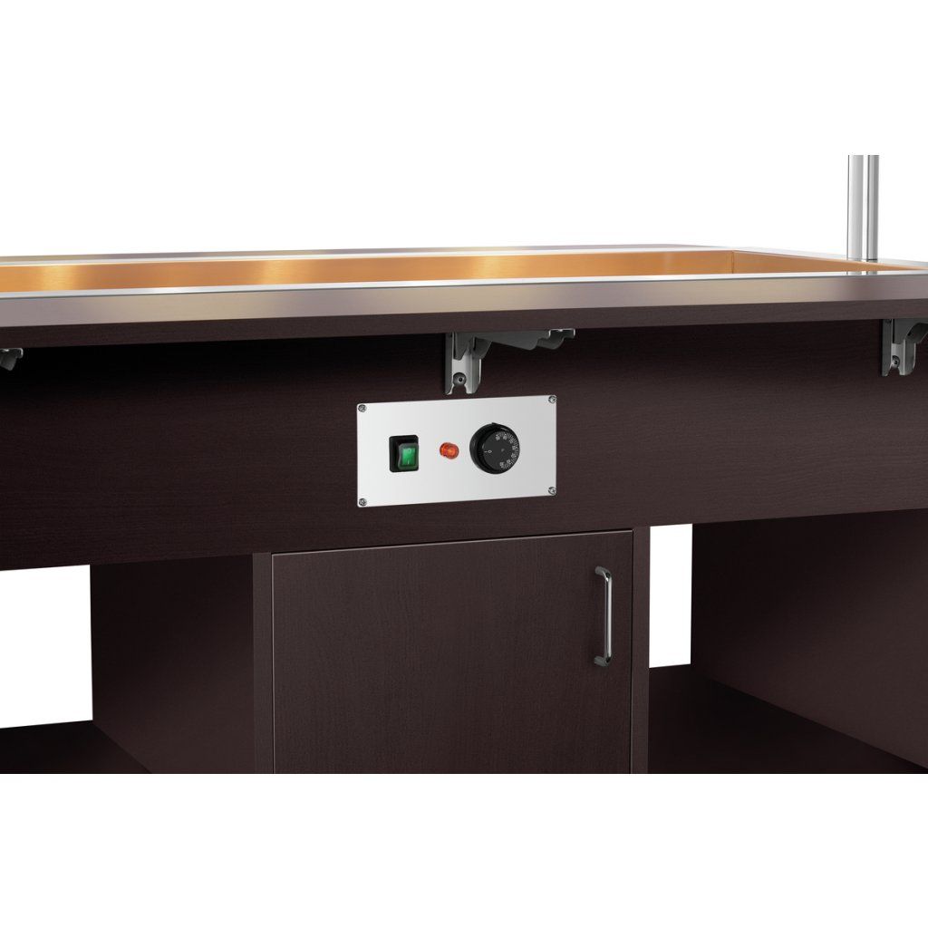 Mobilní bufetové řešení pro nejmenší hosty podporuje samostatný výběr jídel a hravou prezentaci pokrmů. Děti jedí i očima, a proto je tento vozík ideální do hotelů, školek, rodinných restaurací a dalších provozů zaměřených na dětské hosty.