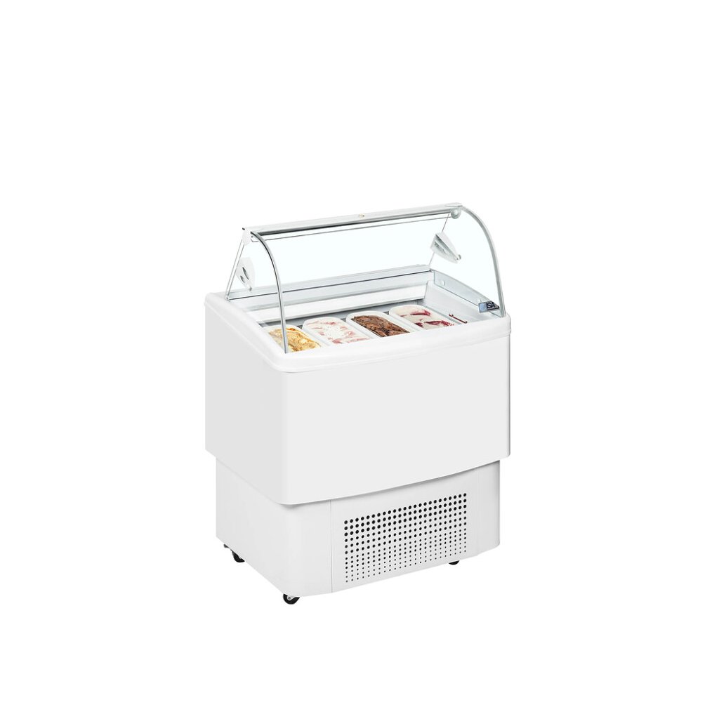 Distributor kopečkové zmrzliny s ventilovaným chlazením a zakřiveným sklemHledáte kvalitní distributor kopečkové zmrzliny, který nebude zabírat ve vaší malé kavárně nebo obchodě příliš mnoho místa? Už nemusíte, pořiďte si model FIJI. Tento distributor kopečkové zmrzliny je vybaven ventilovaným chlazením, které je ideální pro udržení kvality a konzistence vaší zmrzliny.Distributory Fiji jsou samozřejmě vhodné pro standardní gastronádoby na zmrzlinu GN 360x165x120 mm (nejsou součástí balení). S hloubkou pouhých 630 mm je tato virína na zmrzlinu kompaktní a ideální do menších prostor. Kromě toho je vybavena kolečky pro snadný pohyb, vnitřním LED osvětlením a praktickými výklopnými zadními dvířky, která zajišťují optimální hygienu a udržují ideální teplotu zmrzliny.Doplňkové parametry