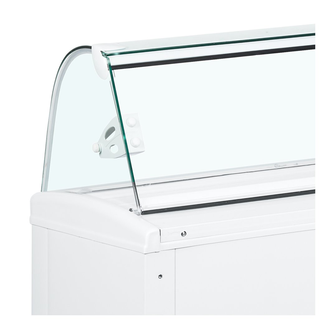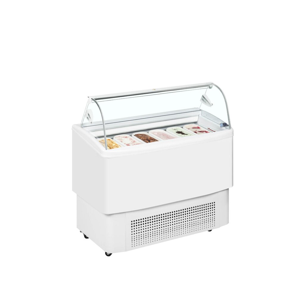 Distributor kopečkové zmrzliny s ventilovaným chlazením a zakřiveným sklemHledáte kvalitní distributor kopečkové zmrzliny, který nebude zabírat ve vaší malé kavárně nebo obchodě příliš mnoho místa? Už nemusíte, pořiďte si model FIJI. Tento distributor kopečkové zmrzliny je vybaven ventilovaným chlazením, které je ideální pro udržení kvality a konzistence vaší zmrzliny.Distributory Fiji jsou samozřejmě vhodné pro standardní gastronádoby na zmrzlinu GN 360x165x120 mm (nejsou součástí balení). S hloubkou pouhých 630 mm je tato virína na zmrzlinu kompaktní a ideální do menších prostor. Kromě toho je vybavena kolečky pro snadný pohyb, vnitřním LED osvětlením a praktickými výklopnými zadními dvířky, která zajišťují optimální hygienu a udržují ideální teplotu zmrzliny.Doplňkové parametry