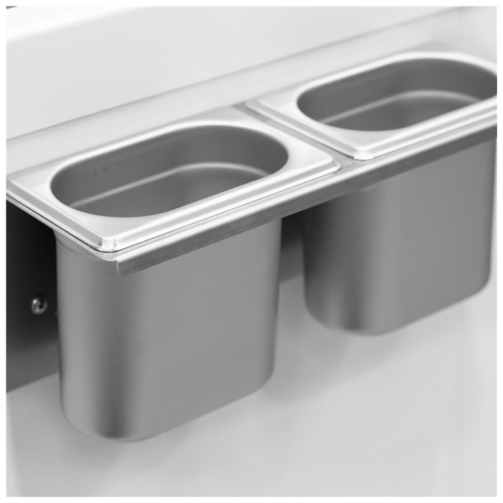 Distributor kopečkové zmrzlinyTEFCOLD IC-SO je náš cenově dostupný distributor zmrzliny Jedná se o kvalitní distributor kopečkové zmrzliny za férovou cenu. Je perfektní, pokud chcete do svého podnikání přidat prodej kopečkové zmrzliny a myslíte přitom na rozpočet. Tento model je ve verzi s rovnými posuvnými prosklenými víky. Náklon výstavní plochy distributoru poskytuje lepší prezentaci obsahu a činí ji ještě ideálnější pro vystavení kopečkové zmrzliny. Model je stále kompaktní a dodává se v různých velikostech, takže je ideální jak pro menší obchody a lahůdky s omezeným prostorem, čerpací stanice a supermarkety. Pevná kolečka umožňují snazší manipulaci v obchodě. Je ideální pro reklamní polep. Všechny velikosti této řady jsou optimalizovány pro koše, které pojmou 5 litrové plastové vany. Koše jsou volitelné. Typ a počet je nutné objednat v náhradních dílech.