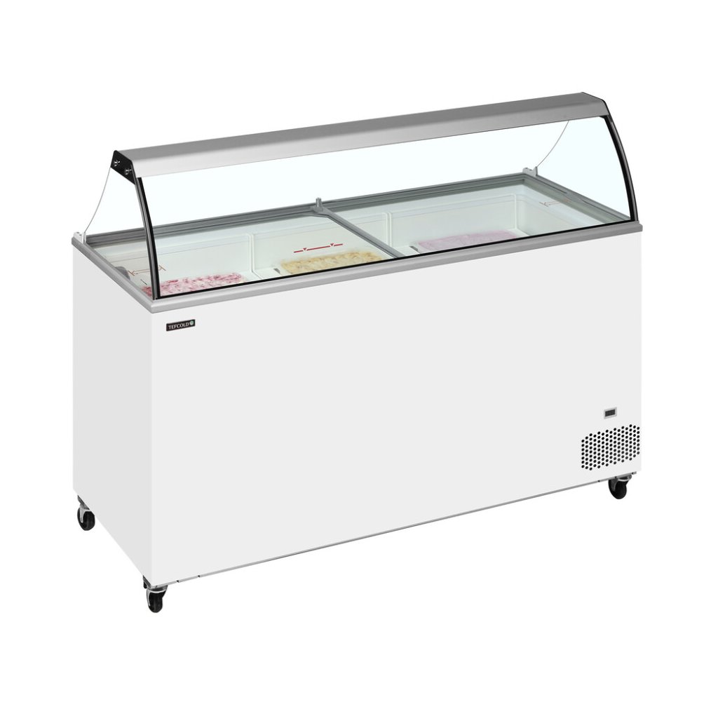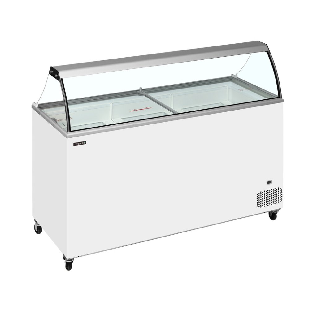 Distributor kopečkové zmrzlinyTEFCOLD IC-SO je náš cenově dostupný distributor zmrzliny Jedná se o kvalitní distributor kopečkové zmrzliny za férovou cenu. Je perfektní, pokud chcete do svého podnikání přidat prodej kopečkové zmrzliny a myslíte přitom na rozpočet. Tento model je ve verzi s rovnými posuvnými prosklenými víky. Náklon výstavní plochy distributoru poskytuje lepší prezentaci obsahu a činí ji ještě ideálnější pro vystavení kopečkové zmrzliny. Model je stále kompaktní a dodává se v různých velikostech, takže je ideální jak pro menší obchody a lahůdky s omezeným prostorem, čerpací stanice a supermarkety. Pevná kolečka umožňují snazší manipulaci v obchodě. Je ideální pro reklamní polep. Všechny velikosti této řady jsou optimalizovány pro koše, které pojmou 5 litrové plastové vany. Koše jsou volitelné. Typ a počet je nutné objednat v náhradních dílech.