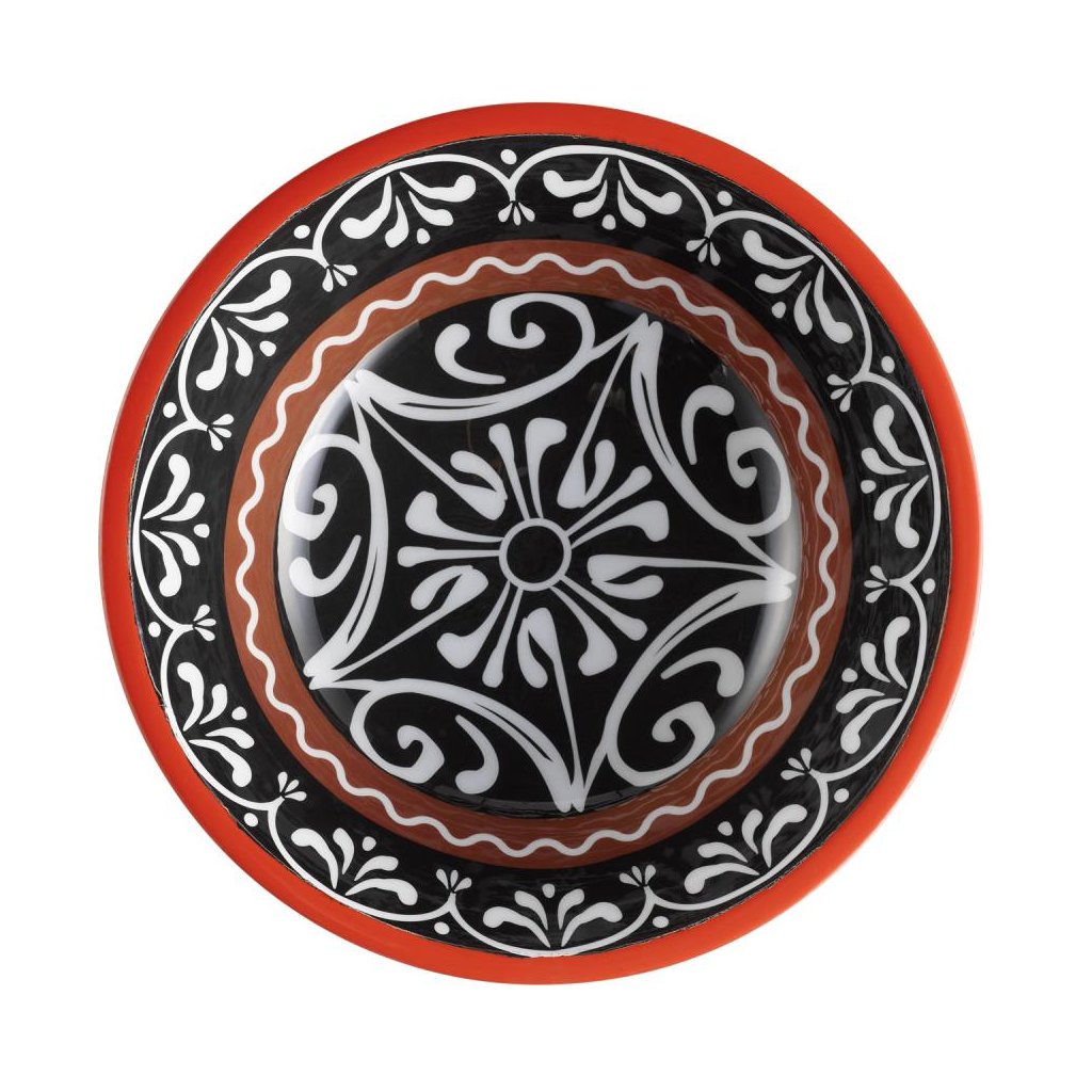 - Jedinečný vnitřní motiv v bílé, červené a černé barvě dodává misce jedinečný nádech a činí z ní výraznou dekoraci na stůl.