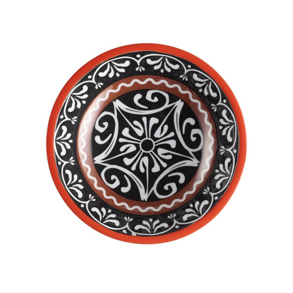 - Jedinečný vnitřní motiv v bílé, červené a modré barvě dodává misce jedinečný nádech a činí z ní výraznou dekoraci na stůl.