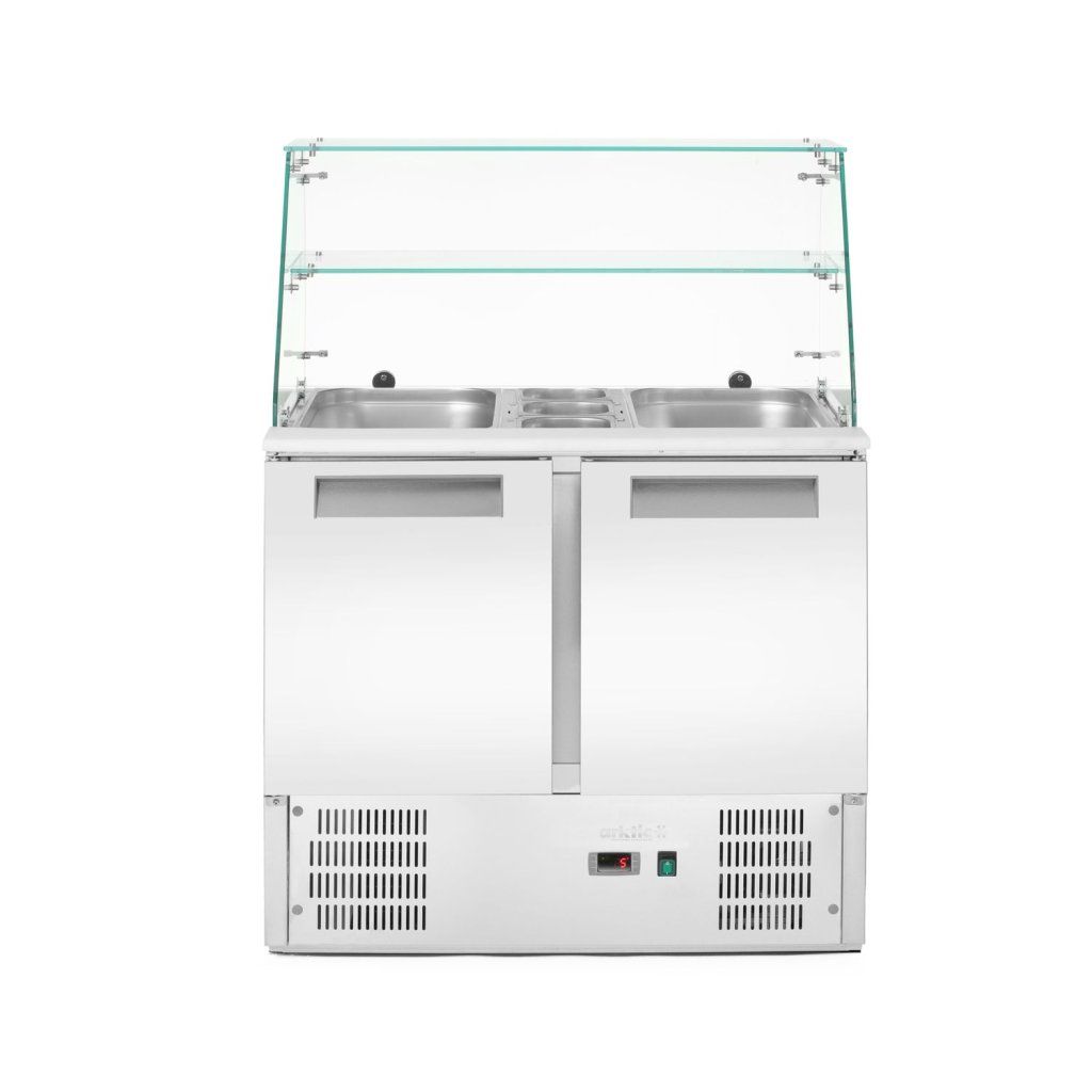 Dvoudveřový chladící salátový stůl s prosklenou nástavbou, 900x700x1300 mm | HENDI, 236185