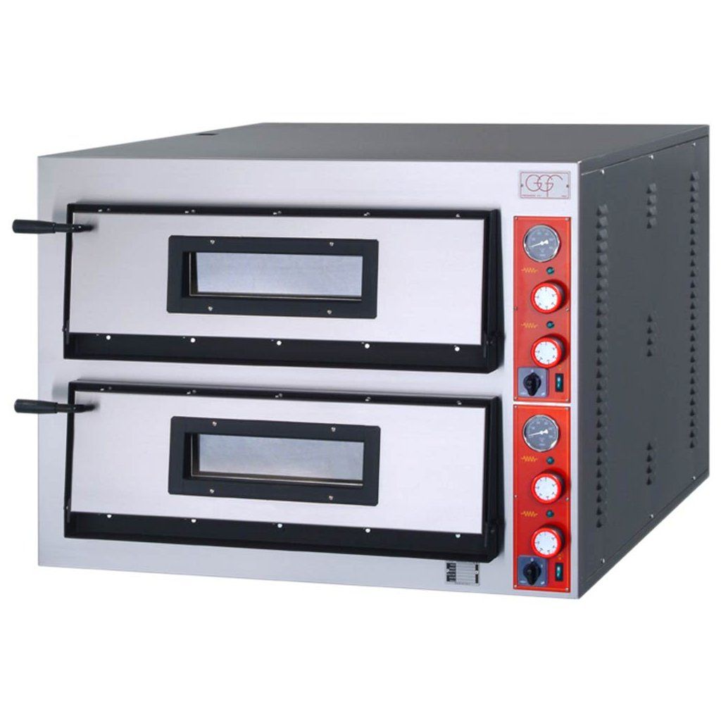 Dvoukomorová pizza pec, 2x4 pizza 360 mm:• přední panel z nerezové oceli• plášť z černě lakované oceli• šamotové desky• teplotní pracovní rozsah do 500°C• osvětlení komory• komín odvádějící páru• možnost nezávisléno ovládání horním a dolním topným tělesemDoplňkové parametry