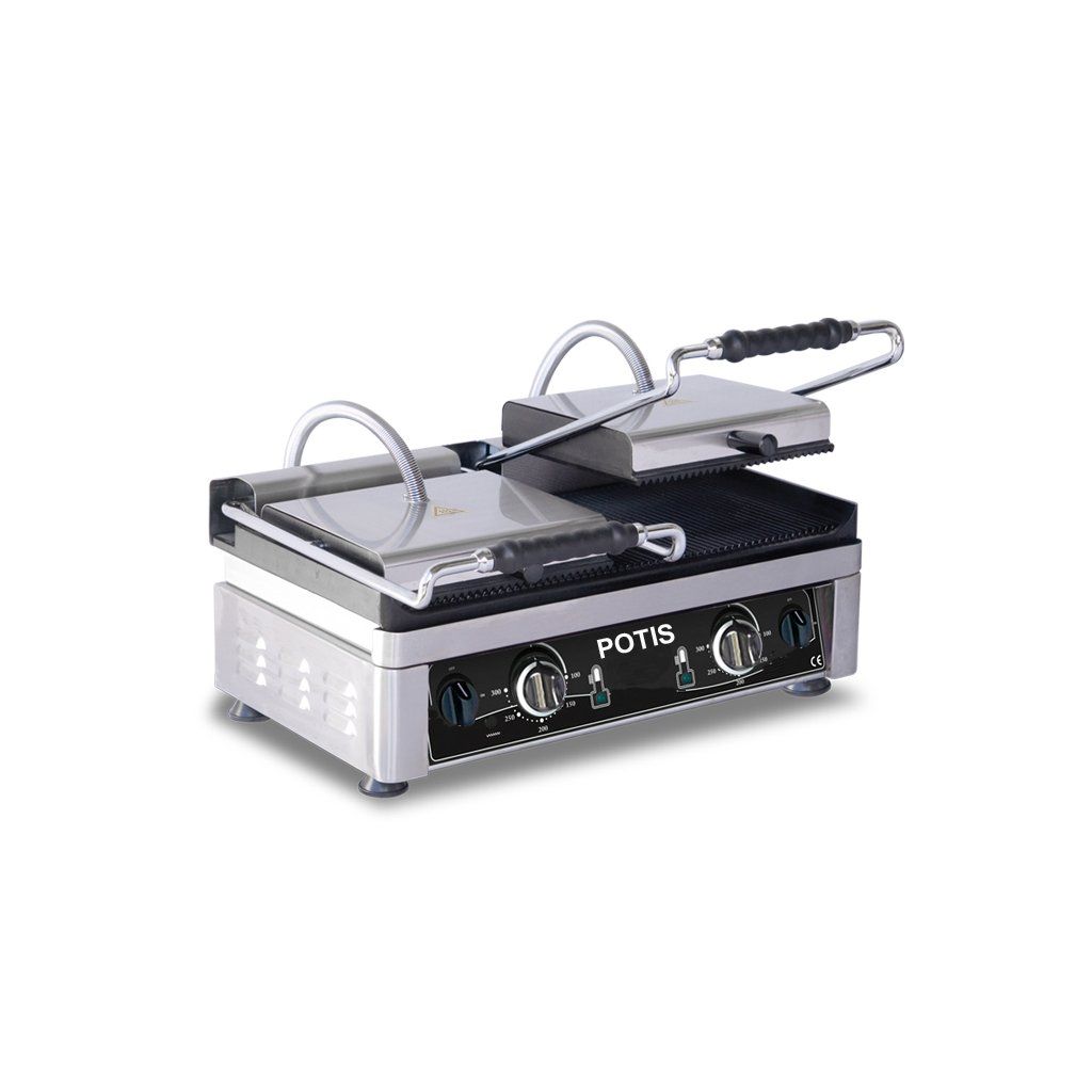 Dvouzónový kontaktní gril, elektrický, ½ hladký - ½ drážkovaný, 3,5 kW, 230V, 560x440x300 mm | POTIS, PK 5530-G