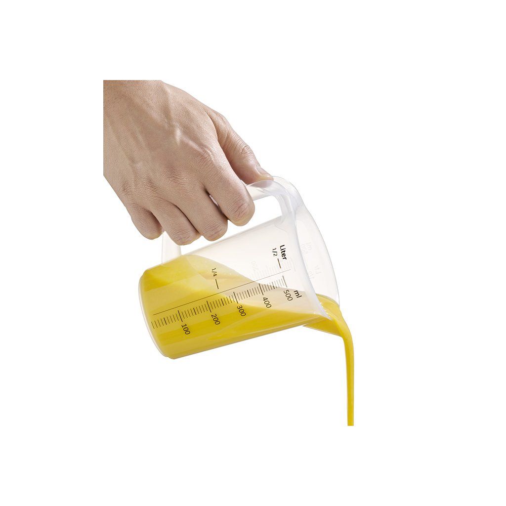 Polypropylenová odměrka s úchytem a mírou uváděnou v litrech a mililitrech. Vhodné do myčky, může se stohovat.Doplňkové parametry
