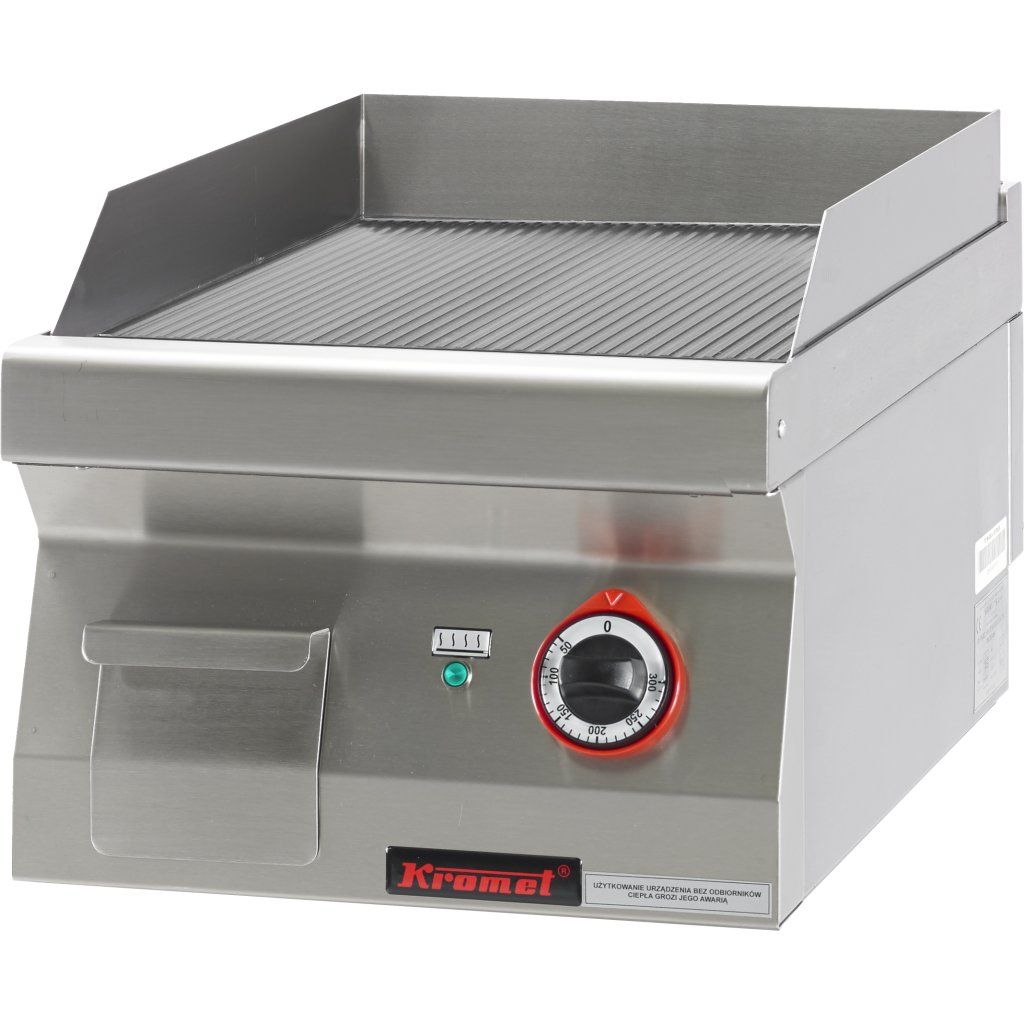 Elektrická grilovací deska, chromovaná ocel, vlnitá, nastavitelná, 4,8 kW, 400x700x280 mm | KROMET, 700.PBE-400R-C