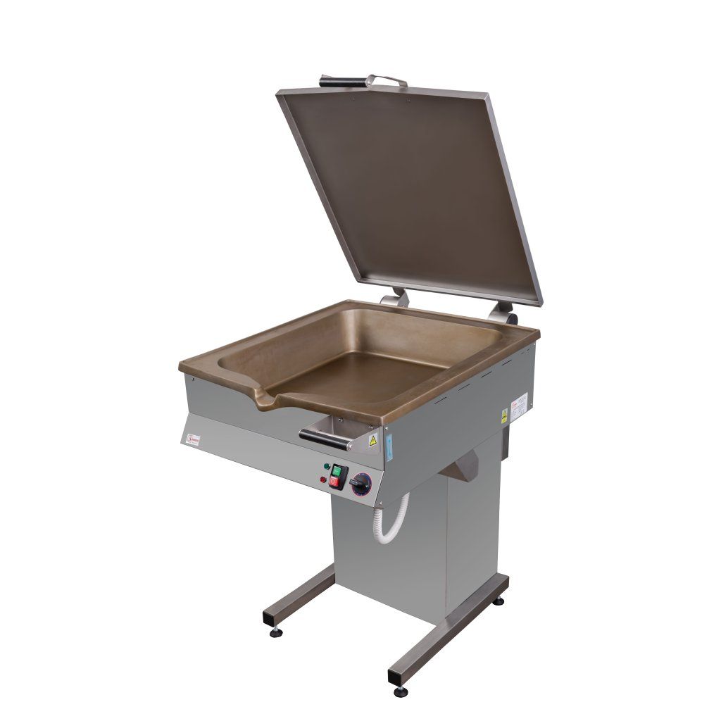 Výklopné elektrické pánve jsou nepostradatelnou pomůckou v kuchyních stravovacích zařízení, kde se smaží a pečou pokrmy, jako jsou kotlety, míchaná vajíčka, palačinky, ryby atd. Litinová pánev není vhodná pro přípravu kyselých pokrmů. Přístroj má nastavitelné nožičky. Pánev nevyžaduje upevnění k podlaze.