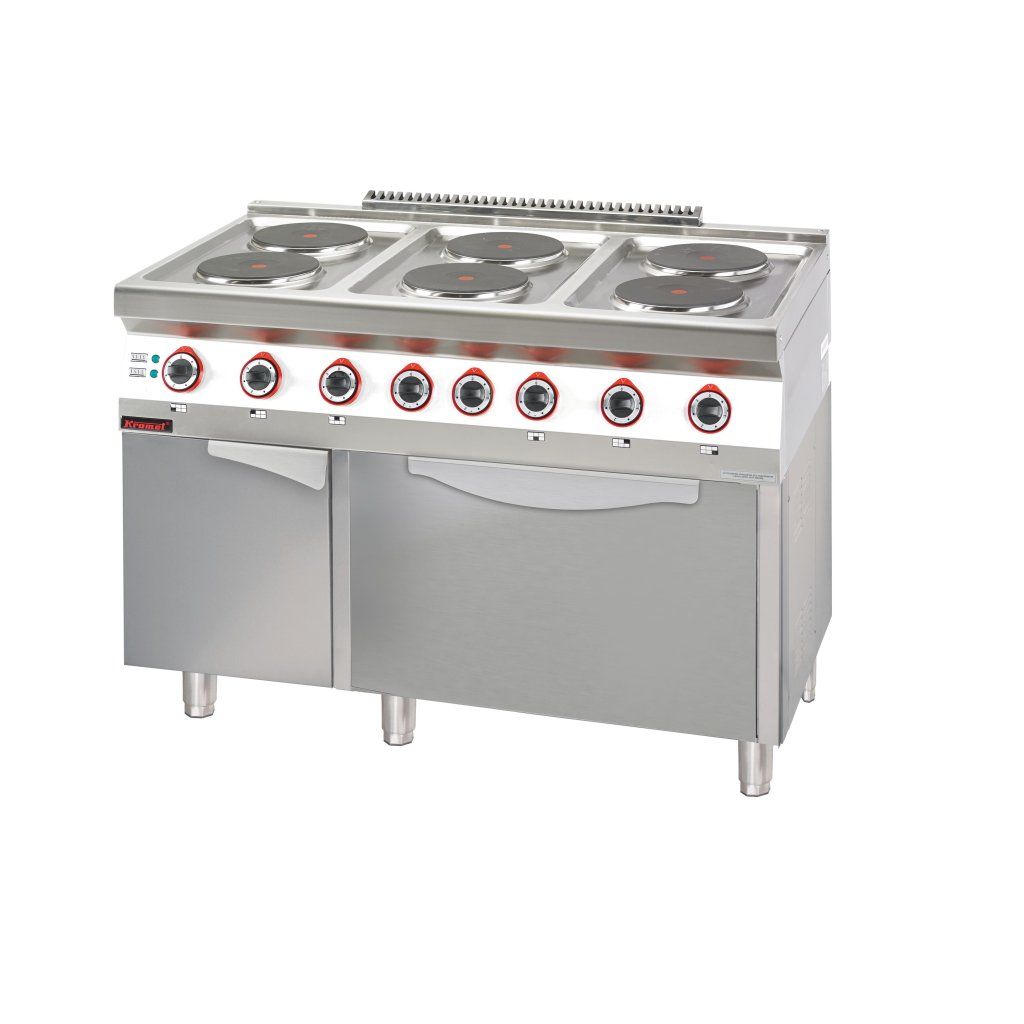 Elektrický sporák s elektrickou troubou 6x2,6 kW + 3,5 kW (trouba) na skříňce s dvířky, 1200x700x900 mm | KROMET, 700.KE-6/PE-1T/SD