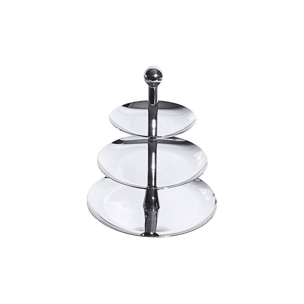Třípatrový etažér na zákusky nebo ovoce je vyrobený z leštěné nerezové oceli.Doplňkové parametry