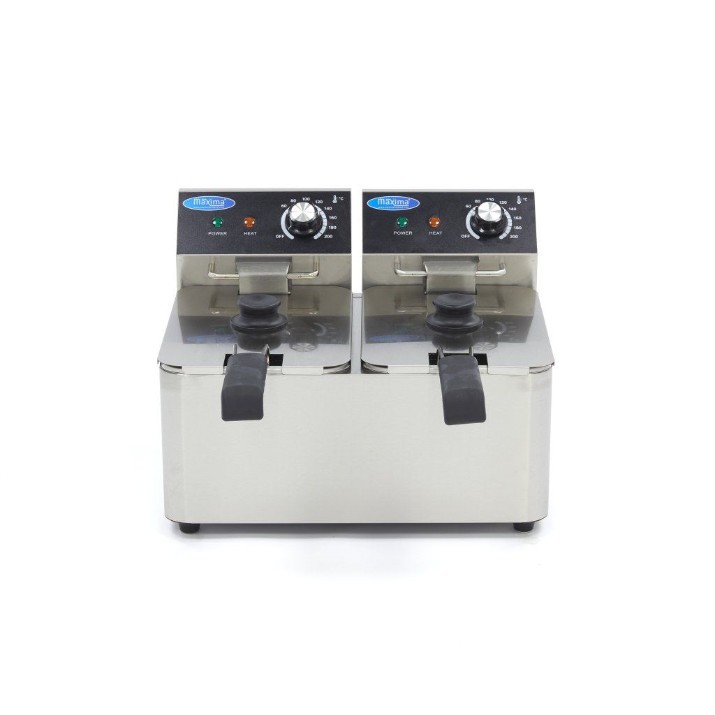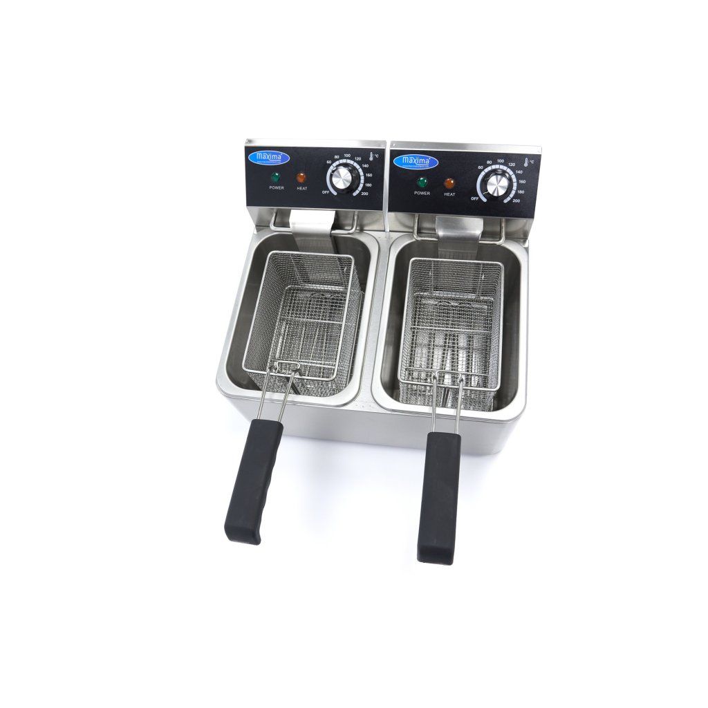 Chcete-li smažit dvakrát více hranolků a občerstvení, vyzkoušejte tuto elektrickou dvojitou fritézu. S kapacitou 2 x 4 litry je vítaným doplňkem každé kuchyně. Tato profesionální fritéza má také nastavitelný termostat pro každou fritézu, takže můžete současně připravovat hranolky v jedné pánvi a občerstvení v druhé. A to vše při požadované teplotě mezi 50 °C a 200 °C. Nesvítí oranžová kontrolka? Pak má olej správnou teplotu a fritéza je připravena k použití.