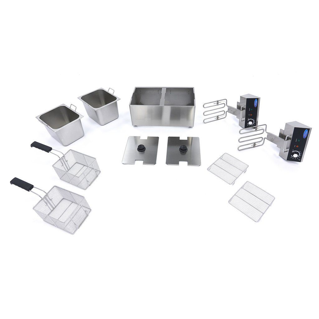 Protože tato profesionální fritéza má studenou zónu, fritovací olej zůstává déle čerstvý. Ve studené zóně visí topné těleso mírně nad dnem fritézy, takže veškerý olej pod topným tělesem je méně horký. Když drobky klesnou ke dnu, spálí se méně rychle, takže olej zůstane déle použitelný. Fritéza má také odnímatelná víka, která zabraňují rozstřiku oleje, a žáruvzdorné rukojeti. Gumové nožičky zajišťují stabilní umístění na jakémkoli pultu nebo stole.