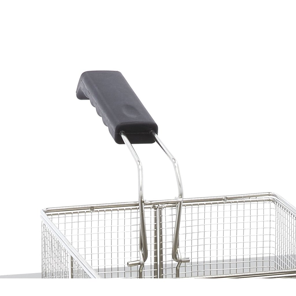 Tato fritéza má také studenou zónu. Její výhodou je, že olej zůstává déle čerstvý. Fritování je tak zdravější, ale olej musíte měnit méně často. Ve fritéze se studenou zónou je chráněné topné těleso zavěšeno v oleji asi 2 cm nad dnem, takže olej pod topným tělesem zůstává mnohem chladnější. V důsledku toho se drobky klesající ke dnu méně rychle připalují a fritovací tuk zůstává déle kvalitnější. Bezpečnost při fritování je v gastronomické kuchyni zásadní. Proto při smažení vždy používejte víko a fritézu postavte na stabilní a pevný povrch ve výšce stolu. Tato fritéza je navíc vybavena ochranou proti přetížení.