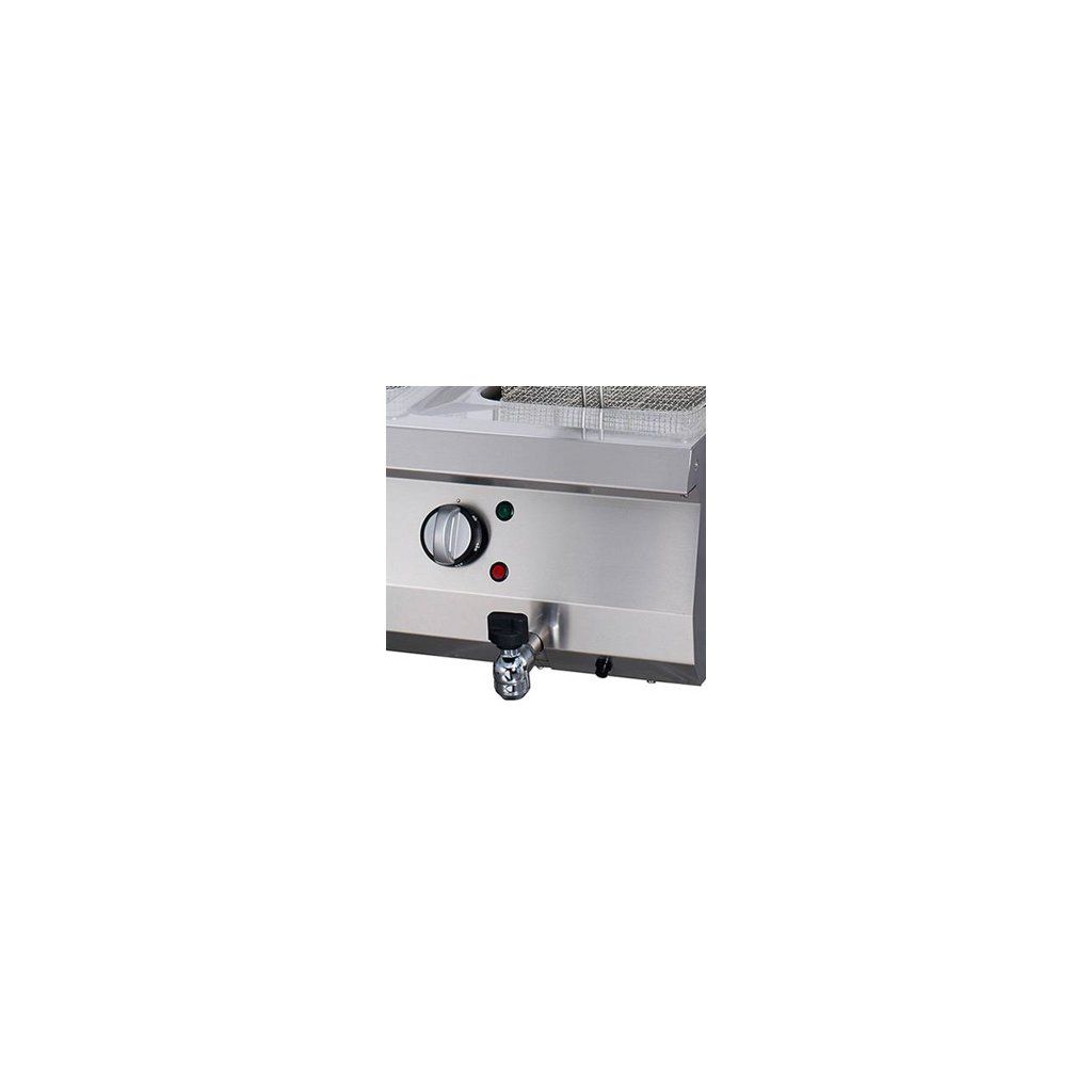 Díky kohoutku můžete rychle a snadno vyměnit starý fritovací olej. Protože každý výrobek má jinou teplotu smažení, můžete na bezpečnostním termostatu fritézy nastavit teplotu v rozmezí 110 až 190 ºC.