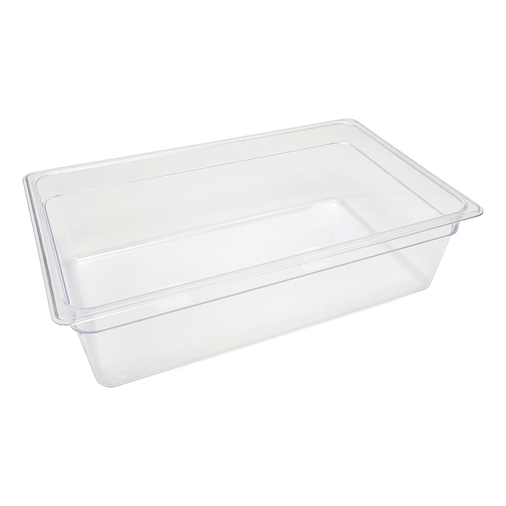 + Vyrobeno z polykarbonátu: průhledný a pevný materiál + Možnost stohování pro úsporu místa + Kompatibilní s mnoha troubami, chladničkami, vitrínami, salátovými mísami, mrazničkami + Lze mýt v myčce nádobí a rychle schnout + Ohýbané hrany a zaoblené rohy pro bezpečnost - Nezahrnuje víka (lze objednat v internetovém obchodě)Gastronádoby (GN) jsou nepostradatelnou součástí každé gastronomické kuchyně. V profesionální kuchyni není nikdy dost GN nádob nebo táců. Použití GN táců se stejnými rozměry zefektivňuje práci v kuchyni. Protože jsou GN nádoby stohovatelné, jsou ideální pro skladování a v kuchyni zabírají málo místa.