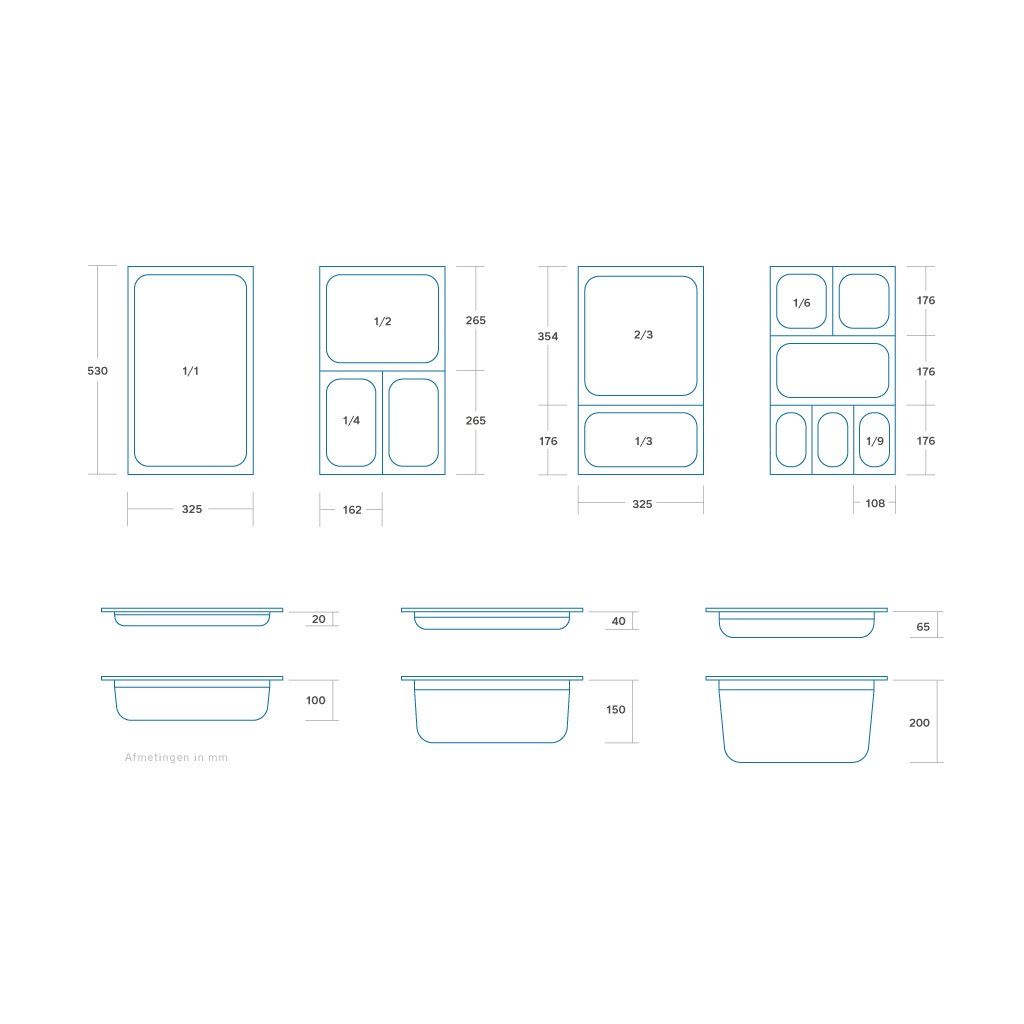 + Vyrobeno z polykarbonátu: průhledný a pevný materiál + Možnost stohování pro úsporu místa + Kompatibilní s mnoha troubami, chladničkami, vitrínami, salátovými mísami, mrazničkami + Lze mýt v myčce nádobí a rychle schnout + Ohýbané hrany a zaoblené rohy pro bezpečnost - Nezahrnuje víka (lze objednat v internetovém obchodě)Gastronádoby (GN) jsou nepostradatelnou součástí každé gastronomické kuchyně. V profesionální kuchyni není nikdy dost GN nádob nebo táců. Použití GN táců se stejnými rozměry zefektivňuje práci v kuchyni. Protože jsou GN nádoby stohovatelné, jsou ideální pro skladování a v kuchyni zabírají málo místa.