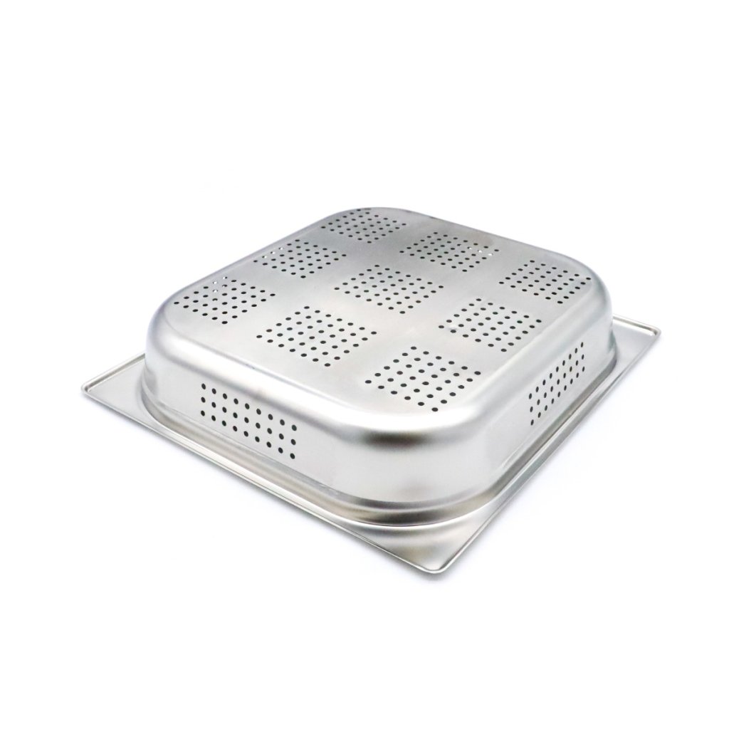 Aby byla nádoba GN mimořádně pevná, má ohnuté okraje a zaoblené rohy. Kromě toho je perforovaná nádoba Gastronorm bezpečná a lze ji výborně stohovat. Ušetříte tak cenné místo ve spíži, lednici i mrazáku. Je také dobré vědět, že nádoba GN splňuje evropské požadavky na bezpečnost potravin. Díky malým otvorům na dně a po stranách můžete nádobu použít k odkapávání zeleniny a dalších potravin.