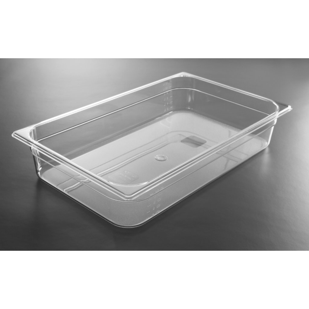 Profesionální gastronádoby GN vyrobené z průhledného polykarbonátu. Nepohlcují pachy ani chutě. Vhodné k použití v mikrovlnkách. Lze mýt v myčkách. Stohovatelné. Na gastronádobě je měrka.Doplňkové parametry