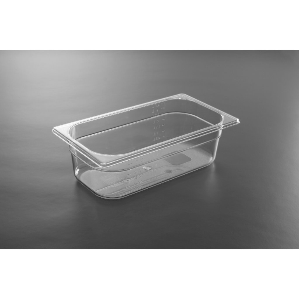 Profesionální gastronádoby GN vyrobené z průhledného polykarbonátu. Nepohlcují pachy ani chutě. Vhodné k použití v mikrovlnkách. Lze mýt v myčkách. Stohovatelné. Na gastronádobě je měrka.Doplňkové parametry