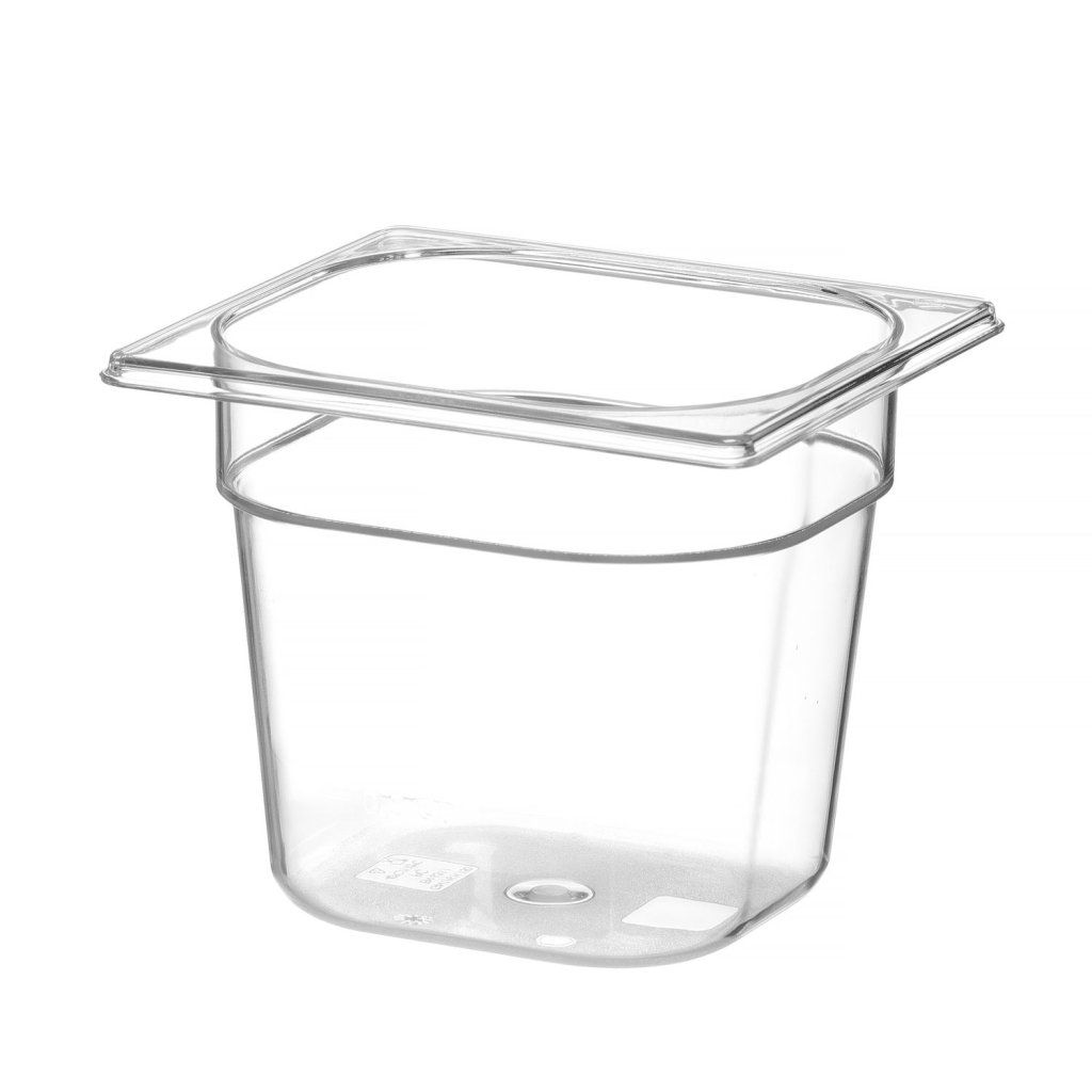 Profesionální gastronádoby GN vyrobené z průhledného polykarbonátu. Nepohlcují pachy ani chutě. Vhodné k použití v mikrovlnkách. Lze mýt v myčkách. Stohovatelné. Na gastronádobě je měrka.Doplňkové parametry
