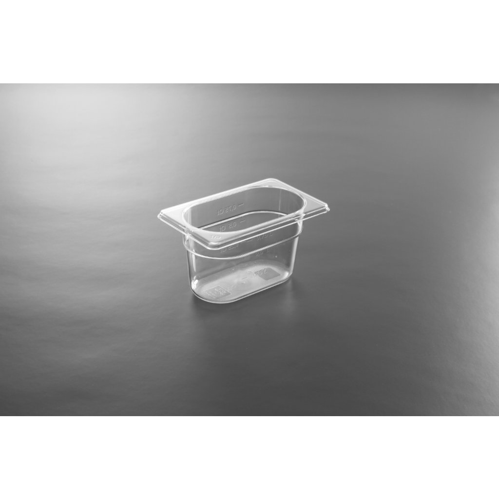 Profesionální gastronádoby GN vyrobené z průhledného polykarbonátu. Nepohlcují pachy ani chutě. Vhodné k použití v mikrovlnkách. Lze mýt v myčkách. Stohovatelné. Na gastronádobě je měrka.Doplňkové parametry