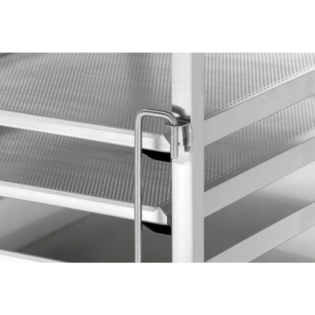 Praktický vozík pro formát 600 x 400 je vybaven oboustranným zajištěním nádob, které se snadno ovládá a spolehlivě drží uložený obsah ve stabilní poloze. Ideální řešení pro bezpečný přesun v kuchyních, pekárnách i gastro provozech.
