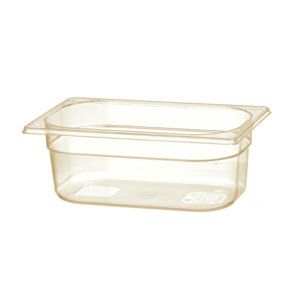 Grilamidová nádoba GN 1/4 pro vysoké teploty je univerzálním řešením pro bezpečné skladování potravin. Je vyroben ze světle žlutého grilamidu s vysokou teplotní odolností (-40 °C až 150 °C), bez karcinogenního bisfenolu A (BPA free). Nepohlcuje pachy ani chutě. Nádoba na potraviny je vysoce odolná proti mechanickému poškození. Na boční stěně má stupnici objemu. Nádoba pro gastronomii je vhodná pro použití v jakékoli fázi zpracování potravin: mikrovlnné trouby, bemary, ohřívače, mrazničky, rychlomrazničky a chladničky. Dóza na potraviny se díky své stohovatelnosti pohodlně skladuje. Lze ji mýt v myčce nádobí.Buďte první, kdo napíše příspěvek k této položce.