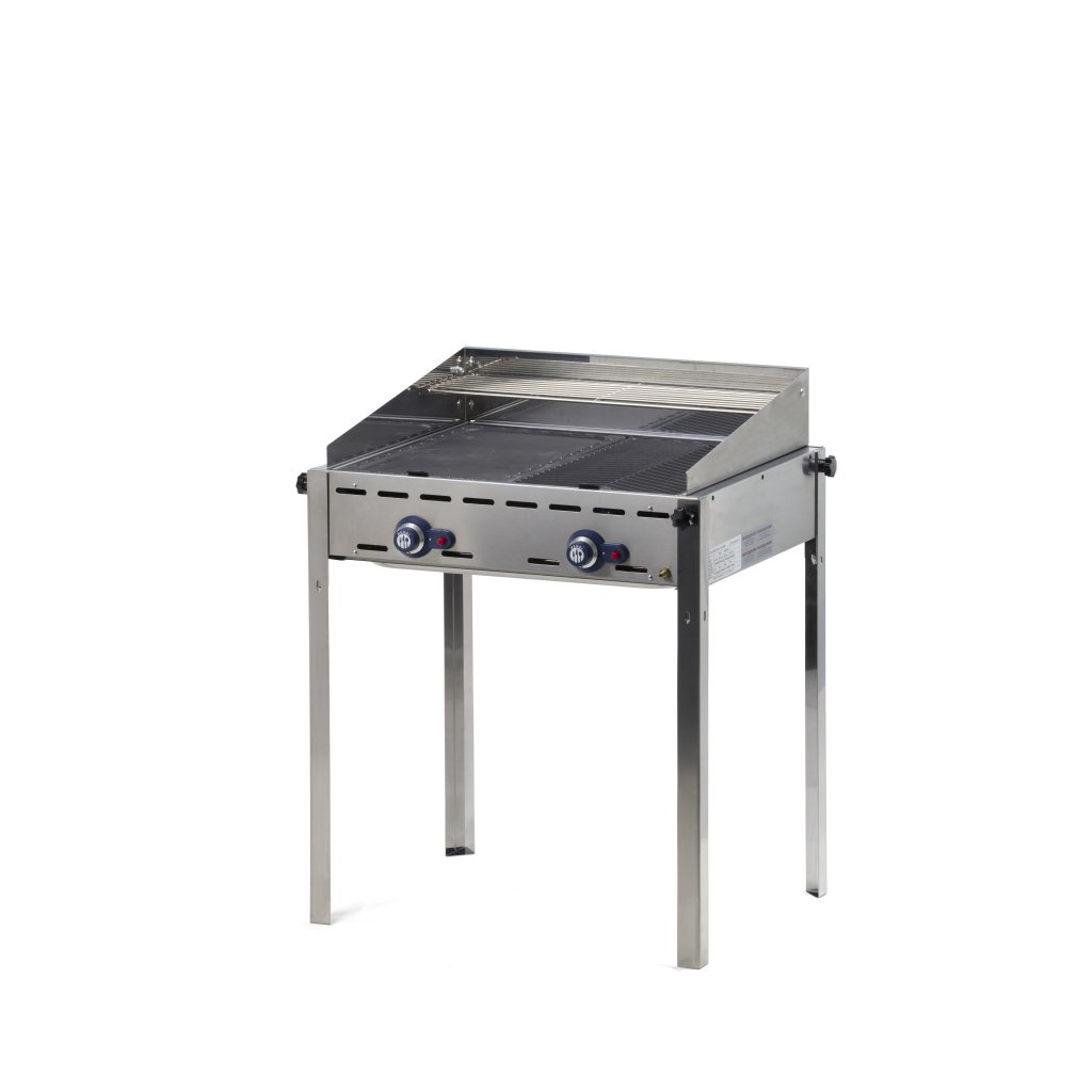 Více odolný proti nárazu větru. Snadno se čistí díky zcela vyjímatelným hořákům, odnímatelné nádobě na tuk GN 2/1 . Zlepšené hořáky zajišťují optimální rozložení tepla až na 90% grilovacího povrchu. Neviditelné spoje. Velmi čistý plamen, nízká emise CO2. Odnímatelné nohy vám umožní používat gril v nastavné verzi. Ochrana před větrem z nerezové oceli. Horní rošt z nerezové oceli pro ohřev omáček nebo čerstvě grilovaného masa. Plynové potrubí a regulátor tlaku přímo spojen s grilem. 2 rošty z nerezové oceli GN 1/1 .Doplňkové parametry