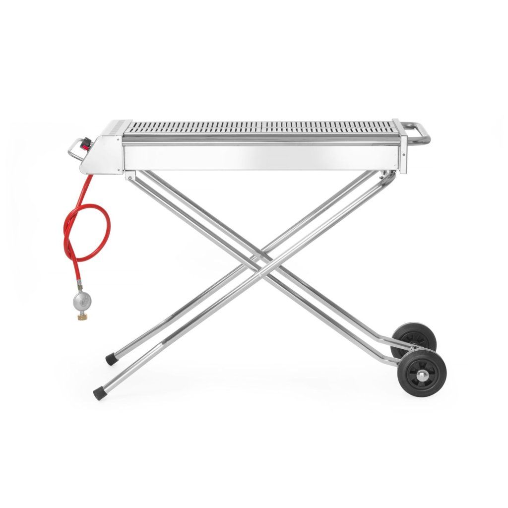 Tyto výkonné grily z nerezové oceli se skládací základnou jsou snadno posuvné díky kolečkům a mohou být složeny naplocho pro snadný převozHořáky produkují vysokou teplotu ve větruodolné jednotce, proto je gril vhodný pro velké provozyJednotka je snadno čistitelná díky zmíněným vysokým teplotámVhodný na propan Velikost mřížky 860x260 mm (2 mřížky o rozměru 430x260 mm)Skládací a pohyblivá základnaVčetně plynové hadice, elektronického zapalování a regulátoru tlakuSpotřeba 536 g/hDoplňkové parametry
