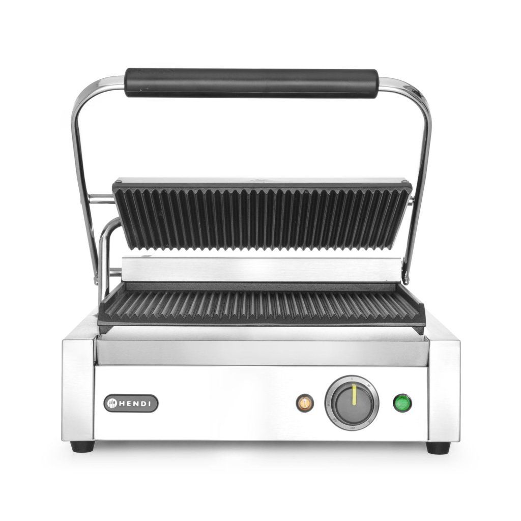 Grill kontaktní PANINI jednoduchý, ryhovaný , 430x370x210 mm | HENDI, 263655