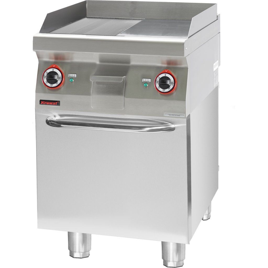 Grilovací deska 1/2gl. + 1/2f. chrom 600 mm, 8 kW na uzavřeném podstavci skříně, 600x700x900 mm | KROMET, 700.PBE-600GR.S.D