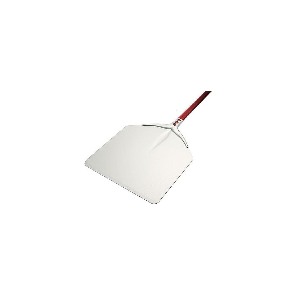 Hliníková lopata na pizzu o rozměrech 320x330 mm s červeným úchytem o délce 1200 mm.Doplňkové parametry