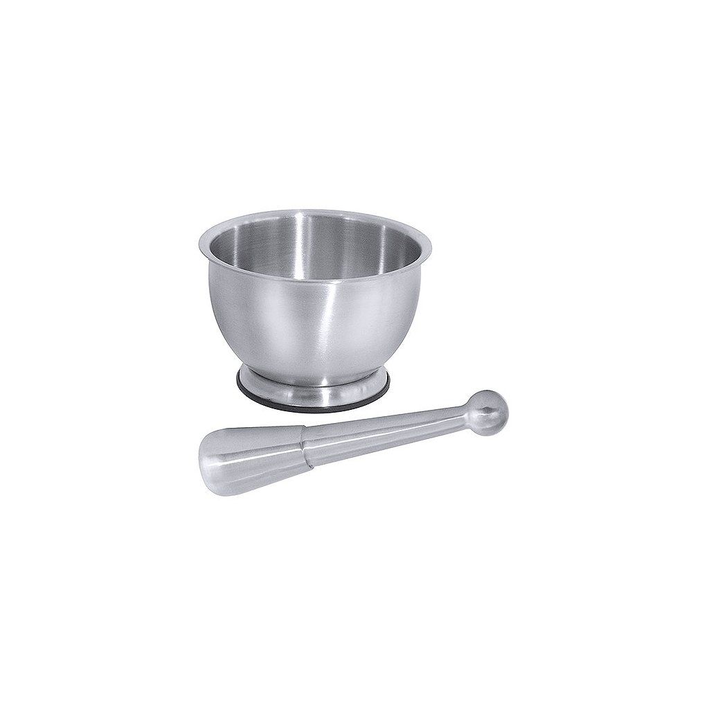 Hmoždíř vyrobený ze saténové nerezové oceli 18/10. Plastový podstavec. Váha 0,25 kg.Doplňkové parametry