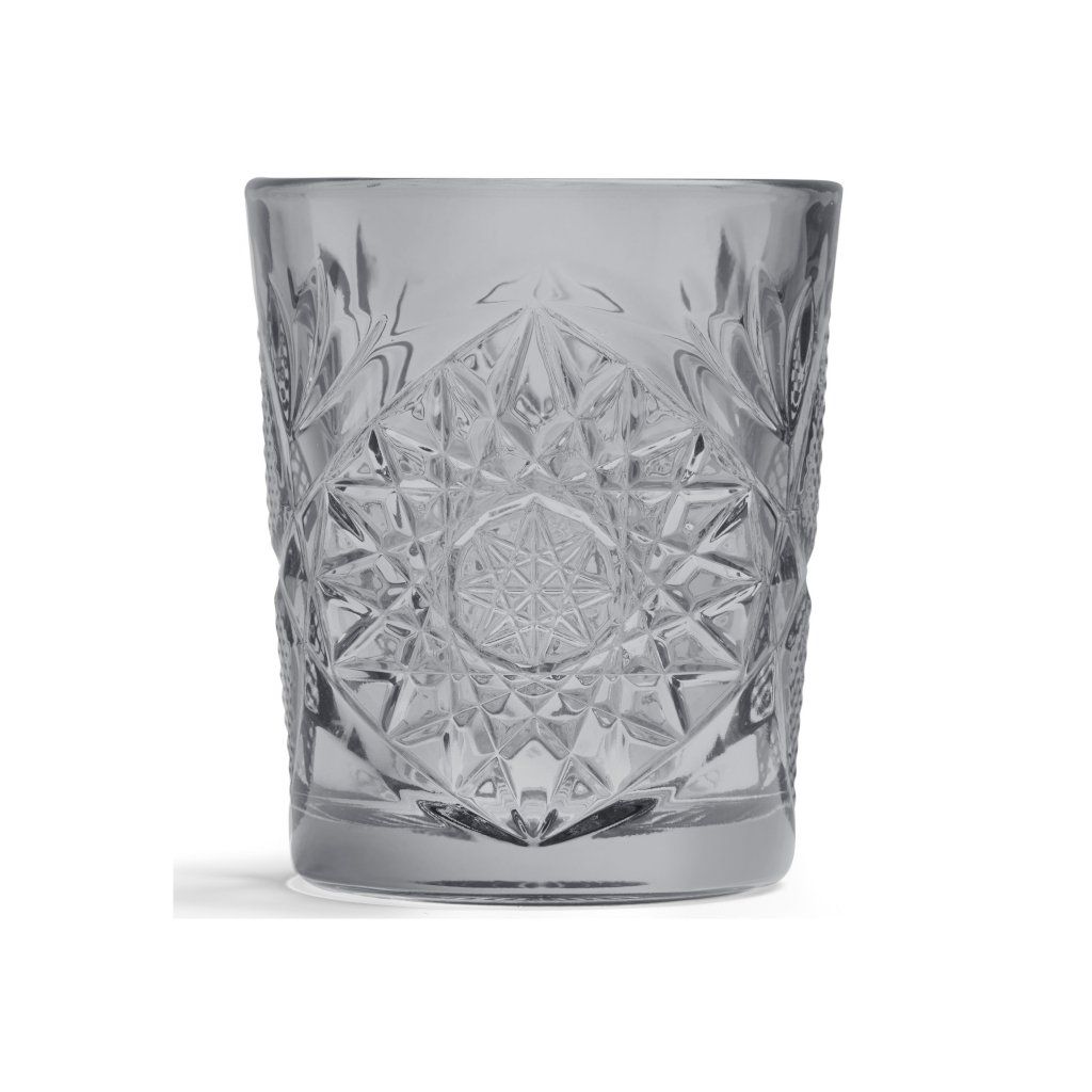 Sklenice kolekce Hobstar představuje nadčasový kousek, který spojuje vintage design s moderností. Broušené sklo krásně odráží světlo a šedá barva mu dodává originální charakter. Sklenice se vyrábí z nejkvalitnějšího sodného skla, odolného proti mechanickému a tepelnému poškození a zašívání.