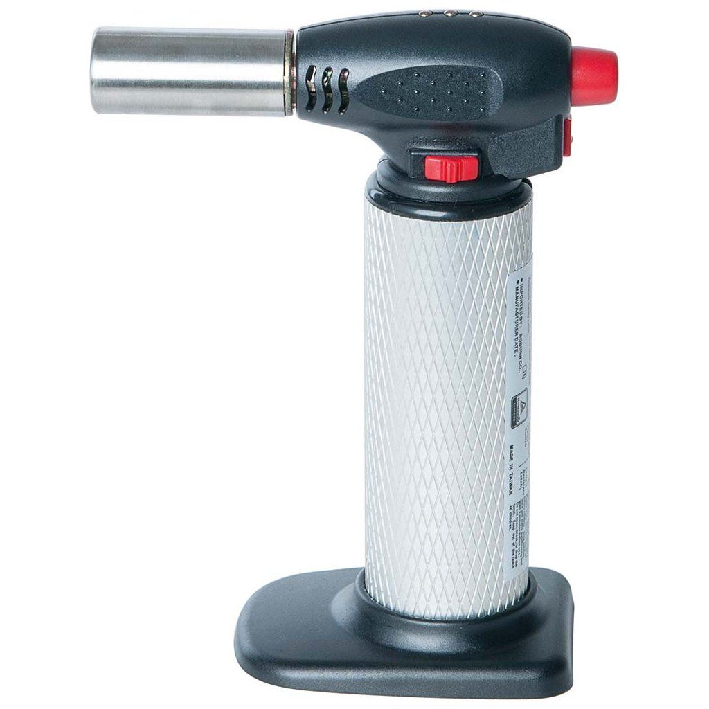 Hořák do Creme Brulle určený pro karamelizování omáček, kremů a pro široké použití v cukrárenství a gastronomii. Zařízení má:• pízoelektrický zapalovač,• regulovaný plamen hořáku,• tlačitko blokády plamene,• dětstkou pojistkuMaximální pracovní doba do 75 min.Teplota plamene 1300 stupňů Celsia.Hořák prodávaný bez plynu.Doplňkové parametry