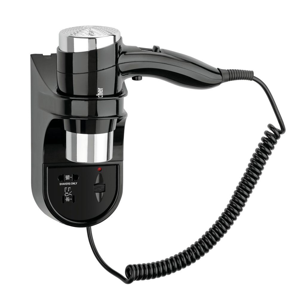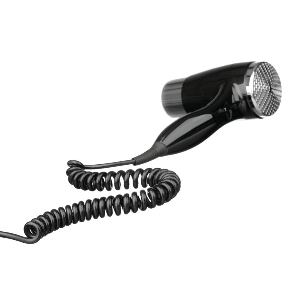 V hotelových pokojích, penzionech, hostelech i kajutách zaujme hotelový fén elegantním černým designem. Integrovaná zásuvka pro holicí strojek a dlouhá spirálová šňůra zajišťují komfortní a flexibilní použití.